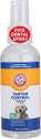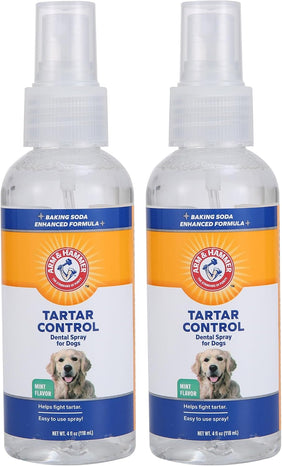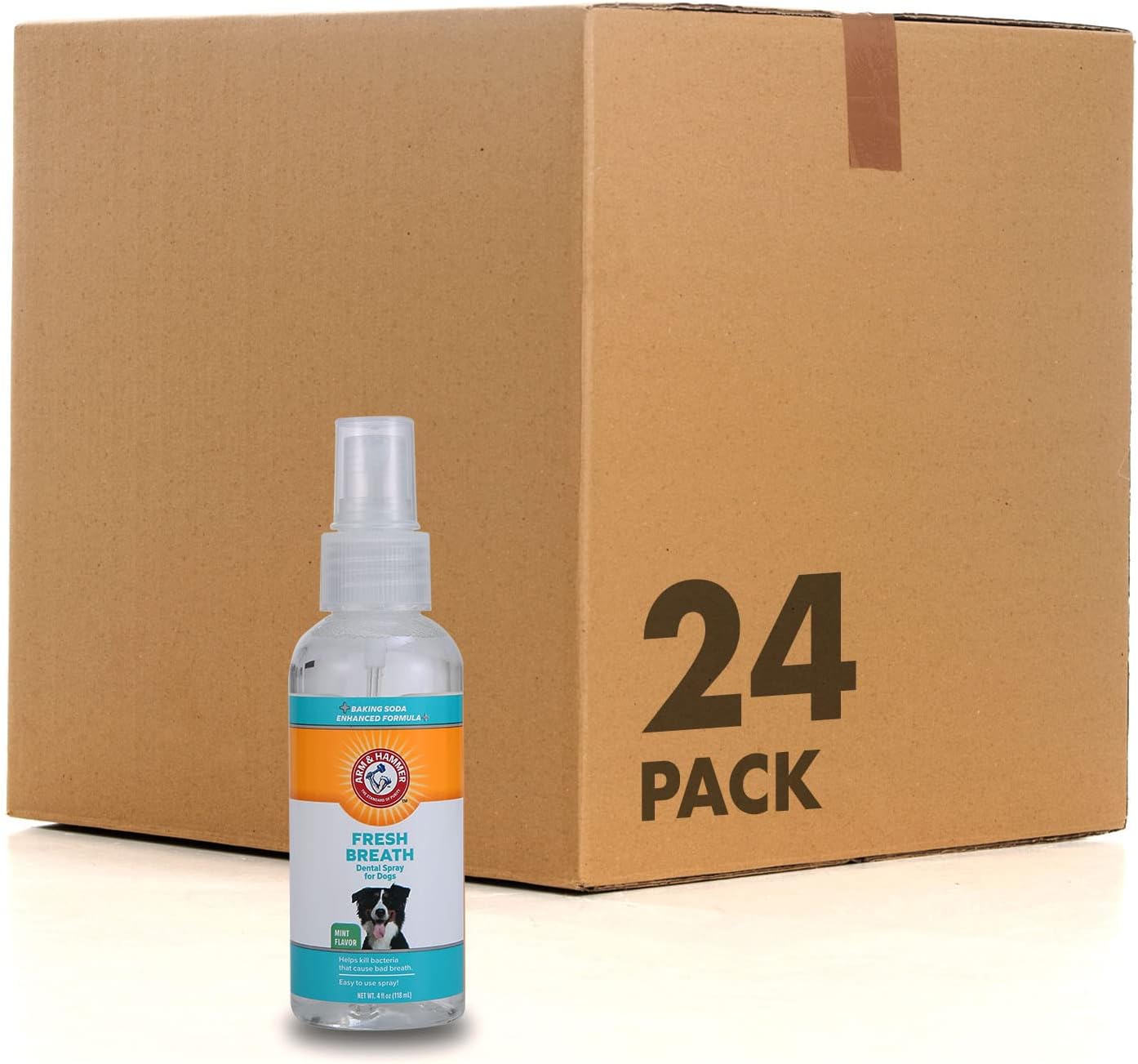 Product Description The Arm & Hammer name has been trusted for over 100 years for gentle yet effective cleaning. Arm and Hammer dog dental care brings those same cleaning methods to our companion animals, making it easy for pet parents to provide dental care for dogs that works. Our dog dental spray whitens teeth, fights tartar buildup, and eliminates bad dog breath, keeping your dog's teeth in top form. Baking soda cleans and deodorizes while enzymes fight tartar, making it an effective dog plaque and tartar remover. Made in China. Directions: Lift lips on either side of dog's mouth. Spray 1 to 2 pumps directly onto dog teeth and gums per side. For best results, do not let dog drink or eat for one hour after use. Ingredients: Water, Sorbitol, Polysorbate 20, Flavor, Sodium Bicarbonate, Tetrasodium Pyrophosphate, Lysozyme, Proteases, Thymol, Chlorophyllin, Camellia Sinesis Leaf Extract, Sodium Chloride, Zinc Gluconate, Cetylpyridinium Chloride. Safety Warning: Avoid contact with eyes. Keep out of reach of children. Store at room temperature. Not intended for human use. This dog teeth cleaner is a great alternative to using a dog toothbrush and dog toothpaste for dog teeth cleaning. This is a great dog breath freshener to get fresh breath for dogs without brushing dog teeth. Use this dog spray for dog teeth cleaning as a plaque remover for dogs and tartar control. The Arm & Hammer dental spray for dogs helps freshen breath, making it a great dog dental spray. Arm & Hammer dog mouth spray could be a dog dental spray plaque remover or dog dental spray tartar removal. brand_description Arm & Hammer