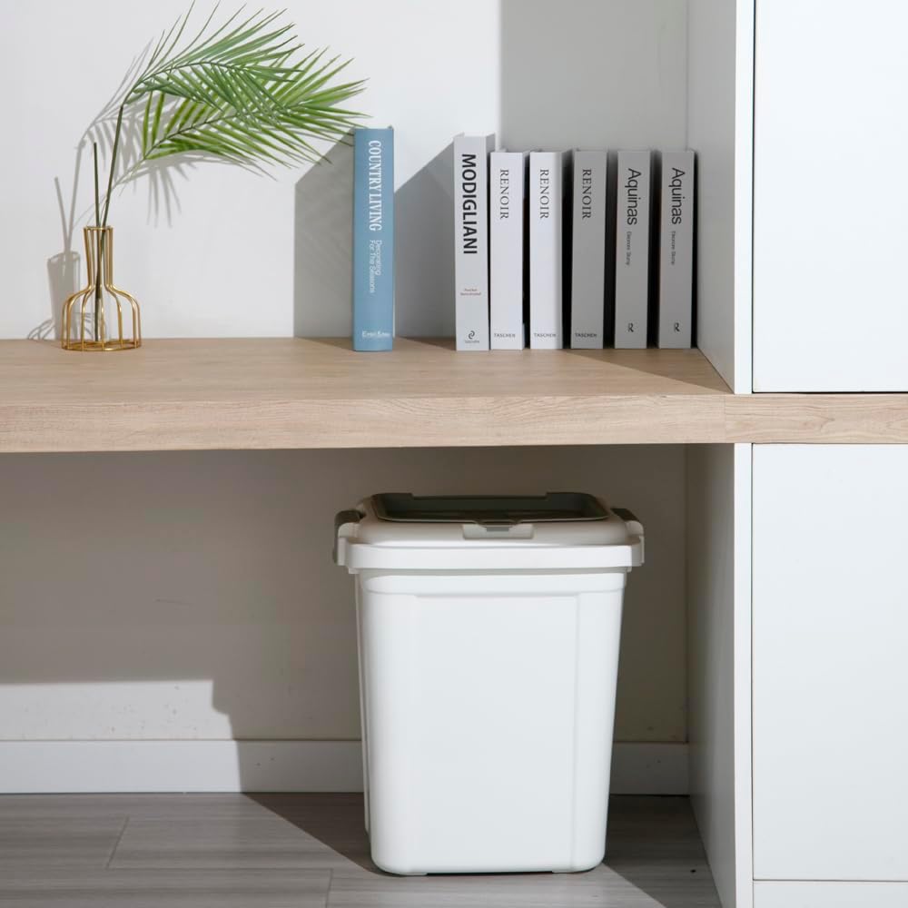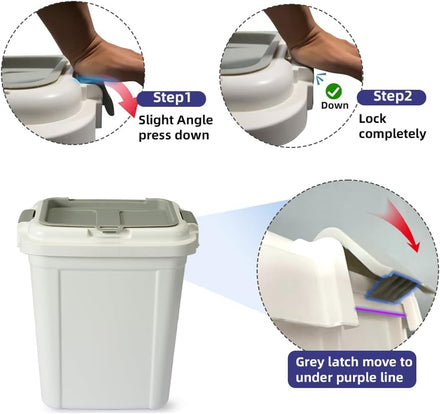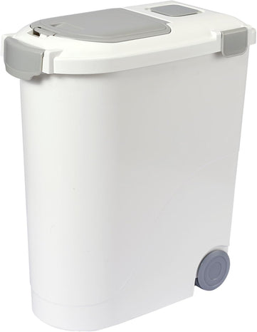- SLIM AND STYLISH DESIGN: The slim shape allows the dog food container to fit in most tight spaces. The stylish white/grey design seamlessly integrates with your home décor, offering both functionality and aesthetic appeal.