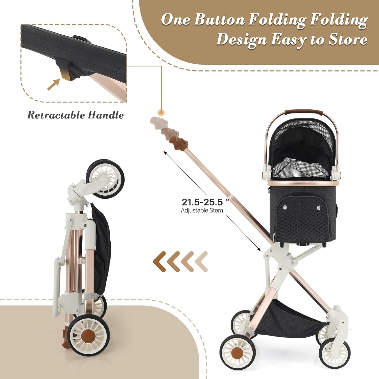 - Customizable Handling: The cat stroller with a multi-height handle, this stroller allows for adjustable positioning, ensuring comfort and control for pet owners during walks