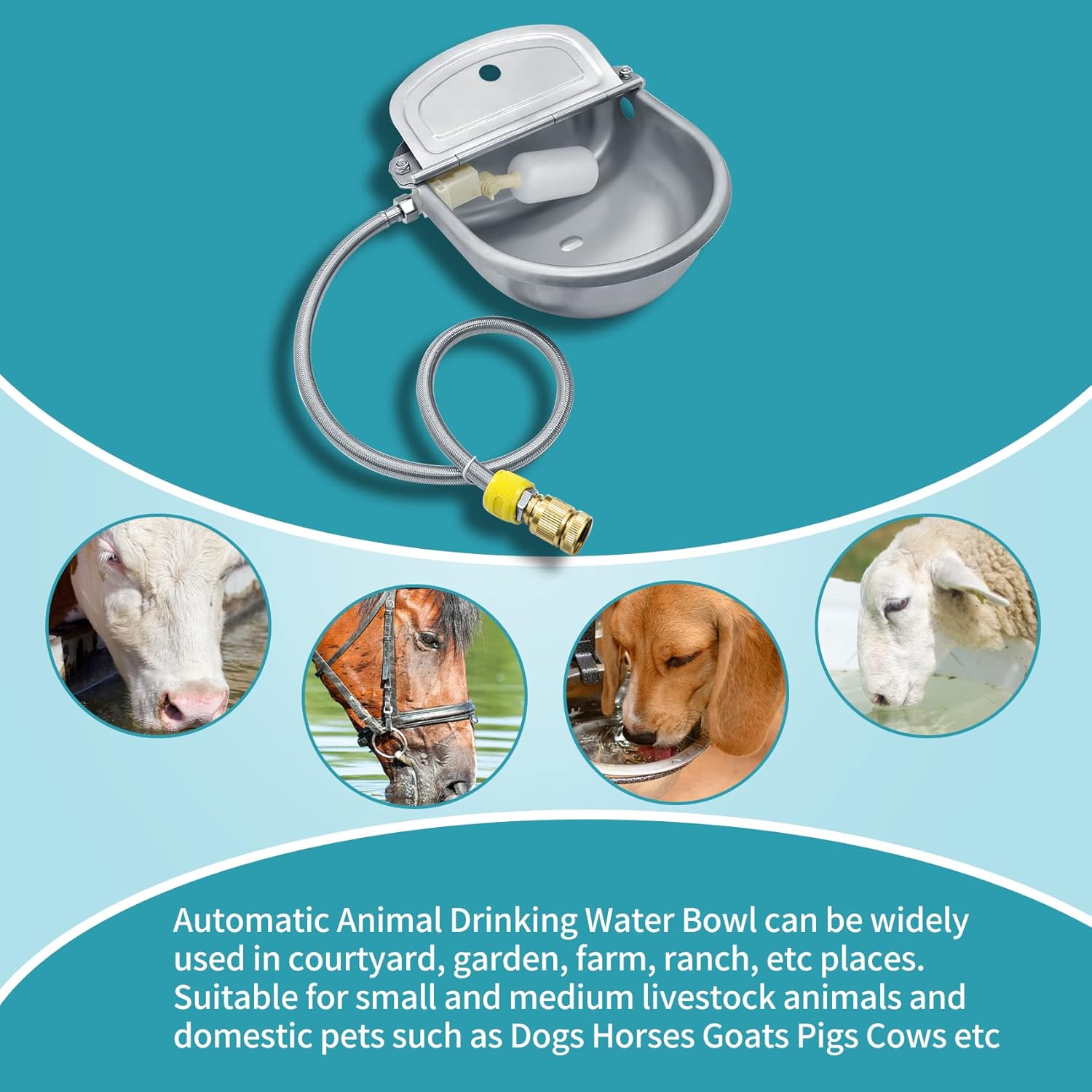Automatic Animal Drinking Water Bowl can be widely used in yard, garden, farm, ranch, etc places. Suitable for small and medium livestock animals and domestic pets such as Dogs Horses Goats Pigs Cows etc