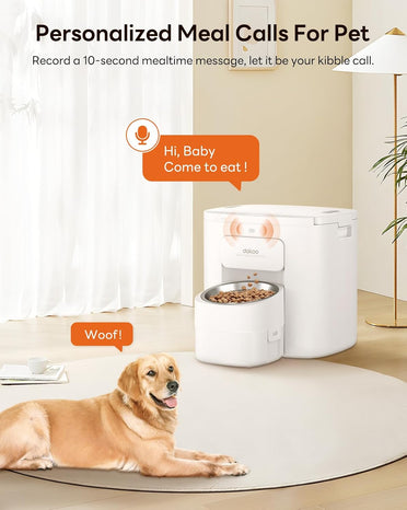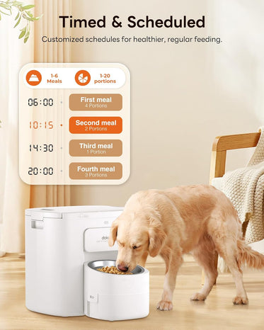 - ⏲️【Never Miss A Meal, Customerized Feeding Portion】The automatic timed feeder for large dogs can schedule up to 6 meals per day with 1-20 portions per meal (1/4 cup each portion), you can easily customize your furry friend's feeding plan and record a voice message for up to 10 seconds that plays for each feeding, so your pet can feel your care even when you're at work or vacation.