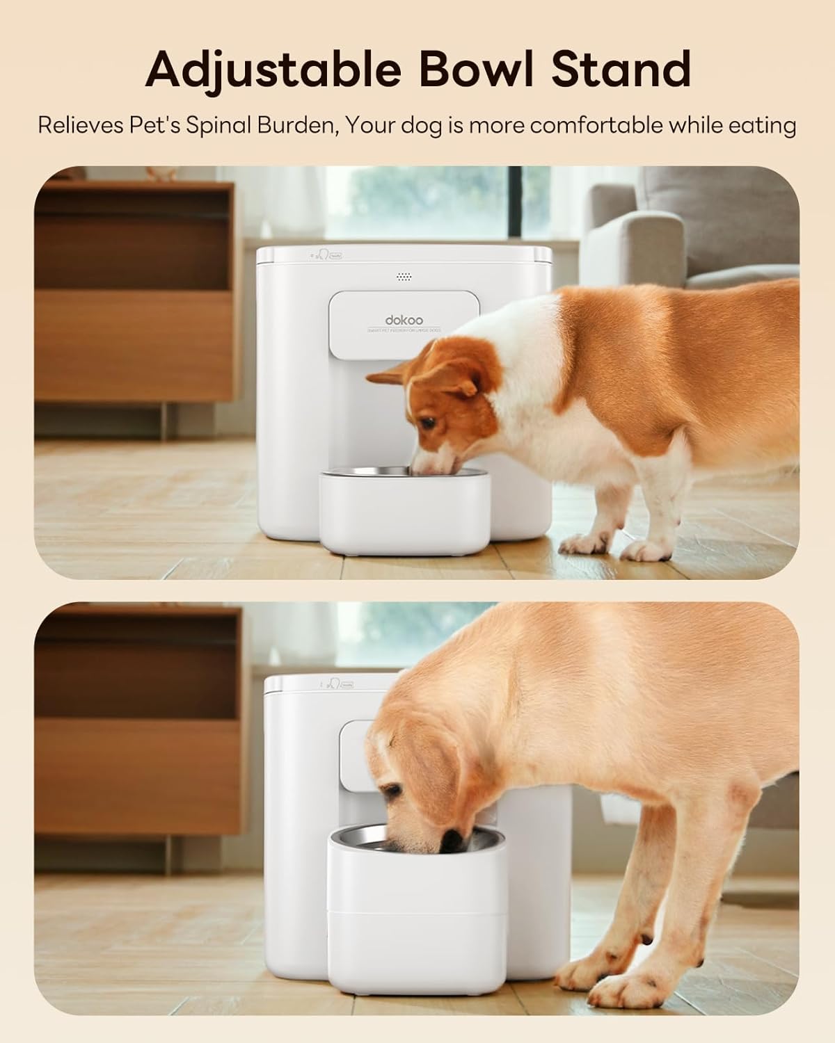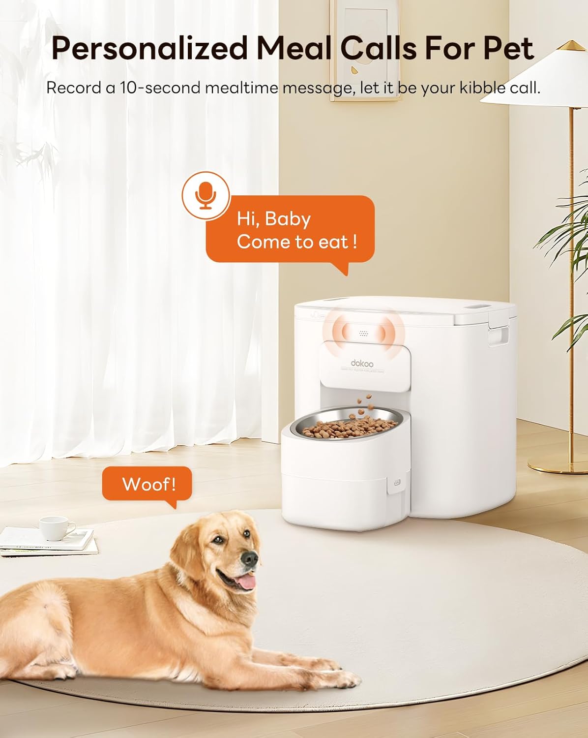 - ✌️【Simple but Reliable, Easier Setup】Unlike other automatic dog feeders on the market with complicated WIFI & camera operations, Dokoo Automatic Dog Feeder makes things much easier. No need to work via WIFI or Bluetooth, you can set up the meals and portions via the feeder's screen, the auto food dispenser will work flawlessly as programmed. No hassles about WIFI or APP connection failure anymore, this large dog feeder will take good care of your fur baby. If need sup.port, please💌 👉service @ dokoo . net👈.