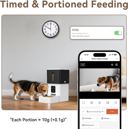 - 1080P Camera & Night Vision - This automatic dog feeder with HD camera and night vision lets busy owners or travelers check dogs anytime, easing anxiety and ensuring peace of mind.