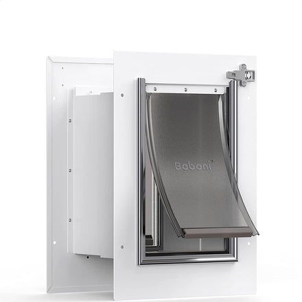 Baboni pet door use aluminum alloy lock and fixed edge, use with sliding panel. Sliding panel can move up and down to close.
