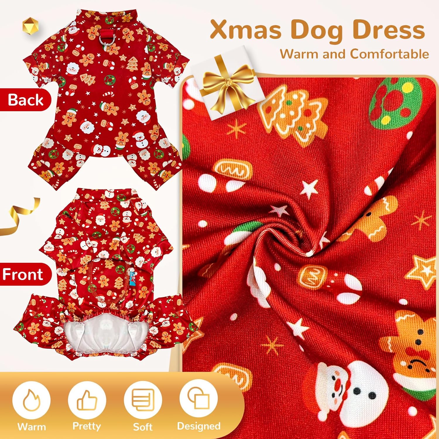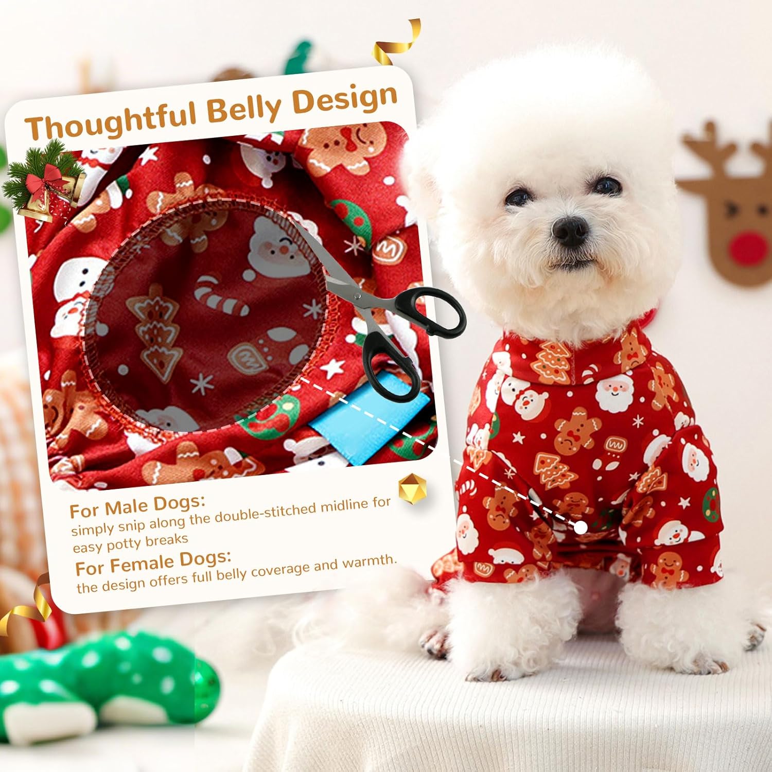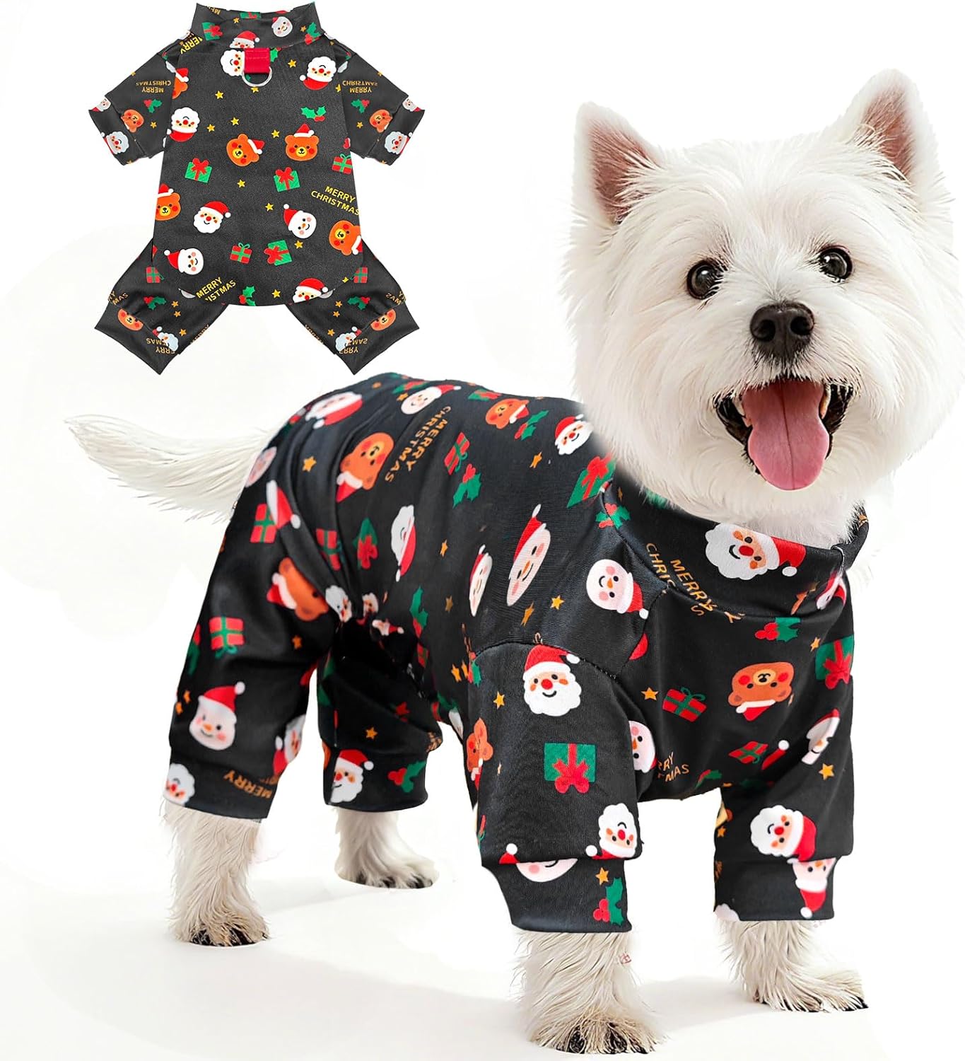 , simply snip along the double-stitched midline for easy potty breaks. , the design offers full belly coverage and warmth. Made from breathable, elastic material that ensures a comfortable fit and allows for easy wear. Equipped with a sturdy D-ring on the back, making it easy to attach a leash for safe and controlled walks without removing the outfit. Dog Christmas Dress Christmas Dog Toys Set Dog Christmas Sweater Dog Christmas Sweater Dog Christmas Sweater Dog Christmas Sweater Dog Christmas Sweater