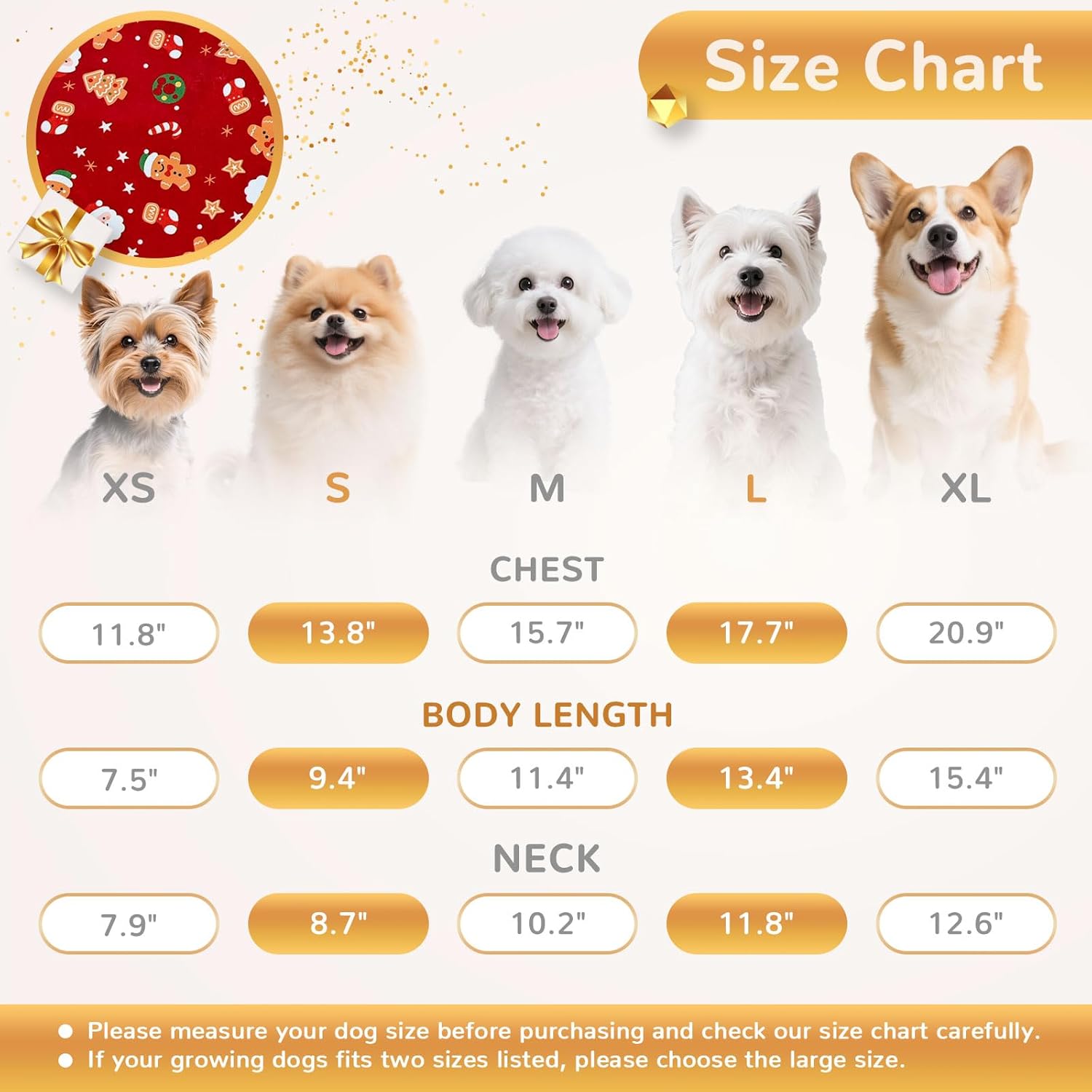 • Find the Perfect Size:Available in four sizes from XS to XL to fit most small dogs. Please measure your dog's back length (from the neck collar to the tail base) and chest girth and compare to our detailed size chart in the images/description. If in doubt between sizes, we recommend sizing up for the best fit