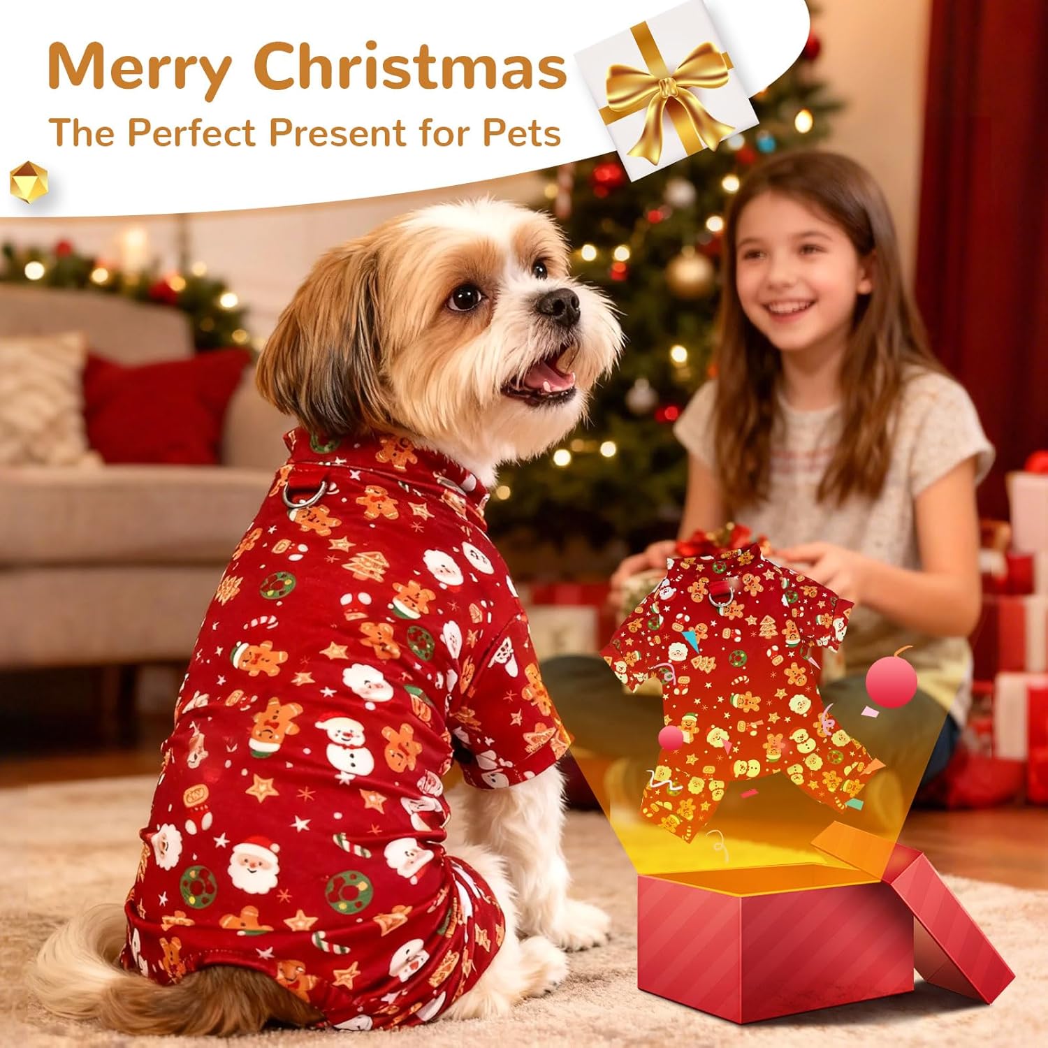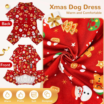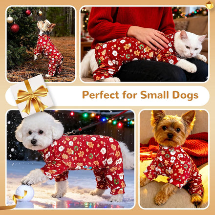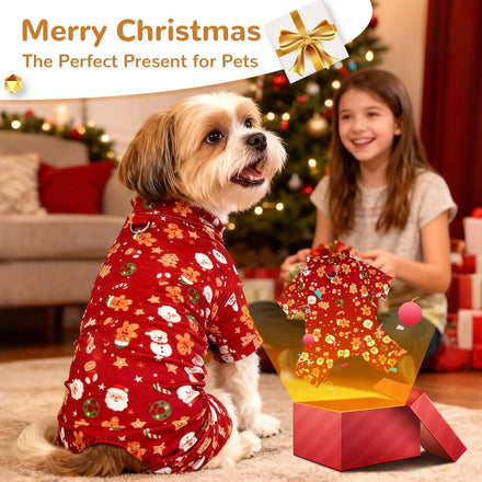 • Cute Christmas Dog Pajamas:Festive Christmas Design – Adorned with a classic Santa and holiday prints, these cozy dog pajamas instantly spark holiday joy. Perfect for creating unforgettable memories during Christmas morning, New Year's Eve parties, and festive family photos