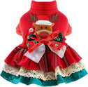 - Cute Red Reindeer Small Dog Christmas Dress:Dress your pup in holiday cheer! This adorable dog dress features a cute reindeer print and a festive, perfectly bowknot on the back. The elegant A-line dress holds its shape, making your little dog the star of every Christmas party and photo op