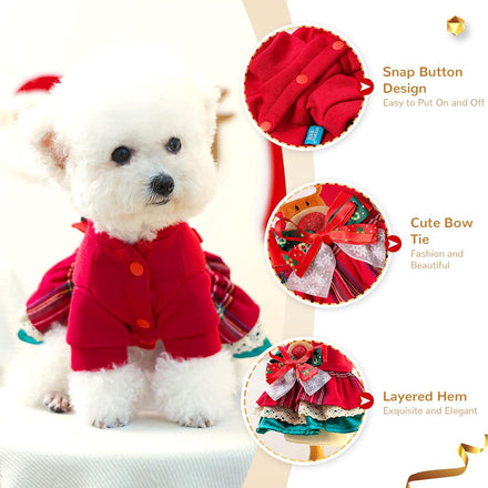 • Cute Red Reindeer Small Dog Christmas Dress:Dress your pup in holiday cheer! This adorable dog dress features a cute reindeer print and a festive, perfectly bowknot on the back. The elegant A-line dress holds its shape, making your little dog the star of every Christmas party and photo op