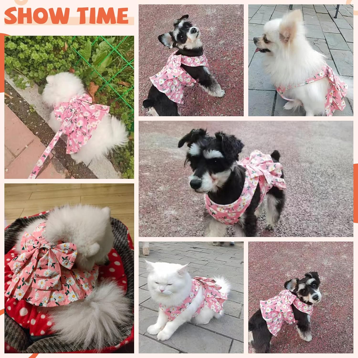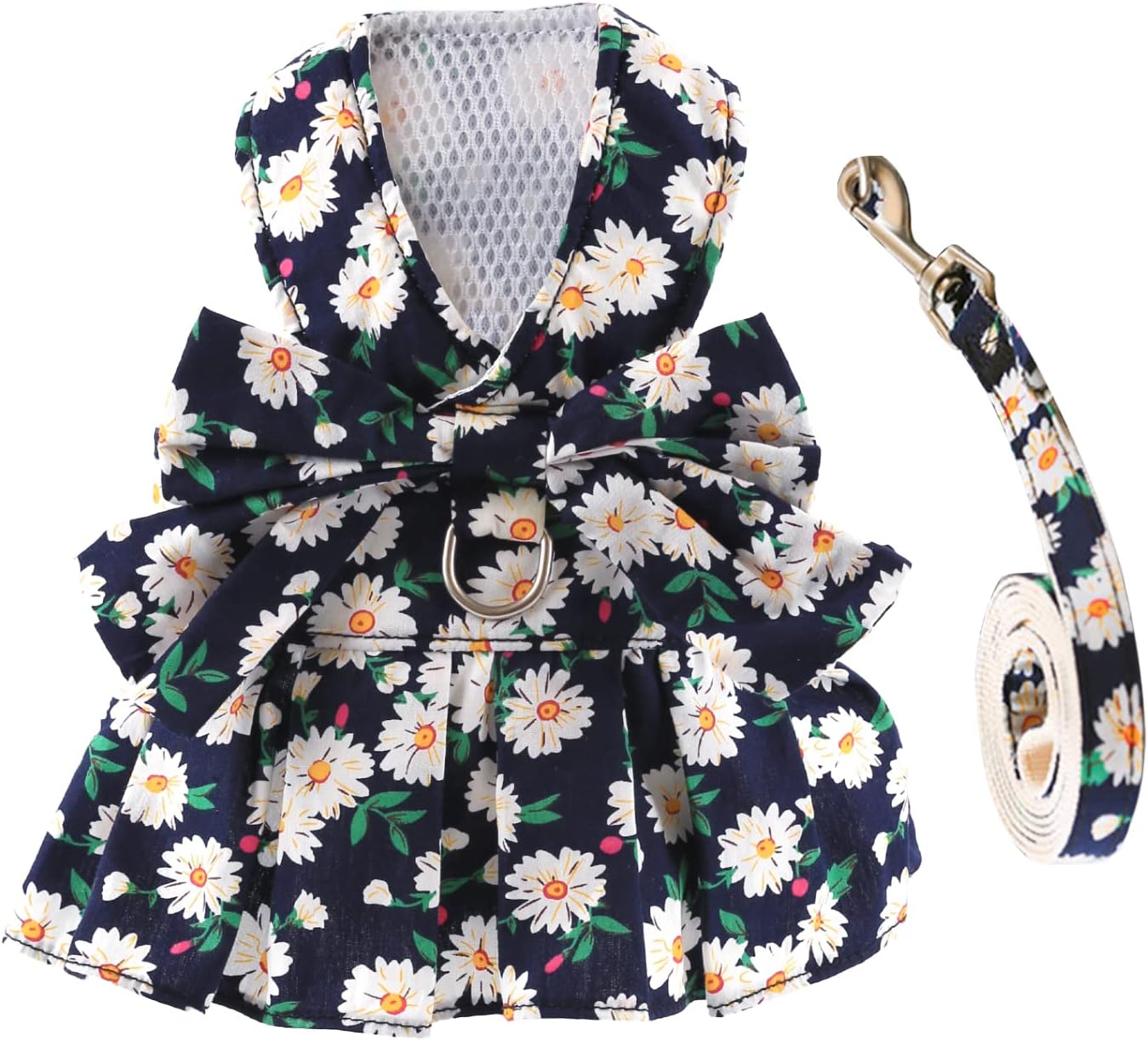 - Pretty Dog Princess Dress:A smart dog dress Harness with a large bow and daisy floral pattern is fashionable and beautiful. Put it on and your dog girl will instantly become an elegant and beautiful princess. Let your pet wear it and go outdoors to enjoy the beautiful spring and summer time together