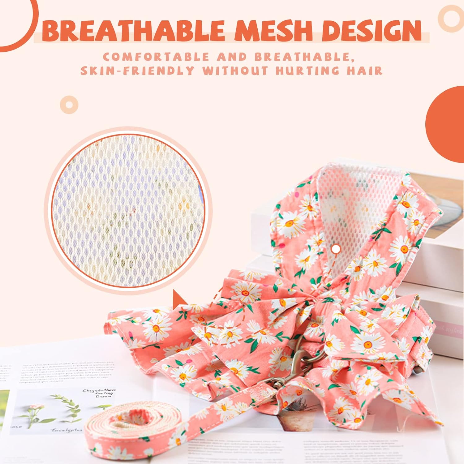 - Comfortable Daisy Dog Dress Leash Set:The inside of the dog dress is designed with a breathable mesh, which is comfortable and breathable, and is skin-friendly and will not harm the dog's hair. Dog clothes for spring and summer