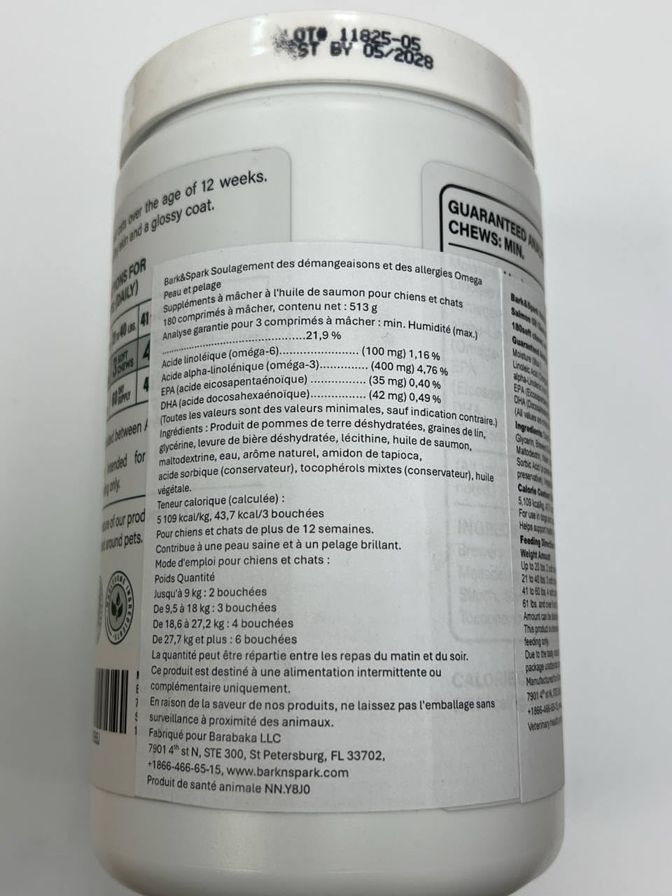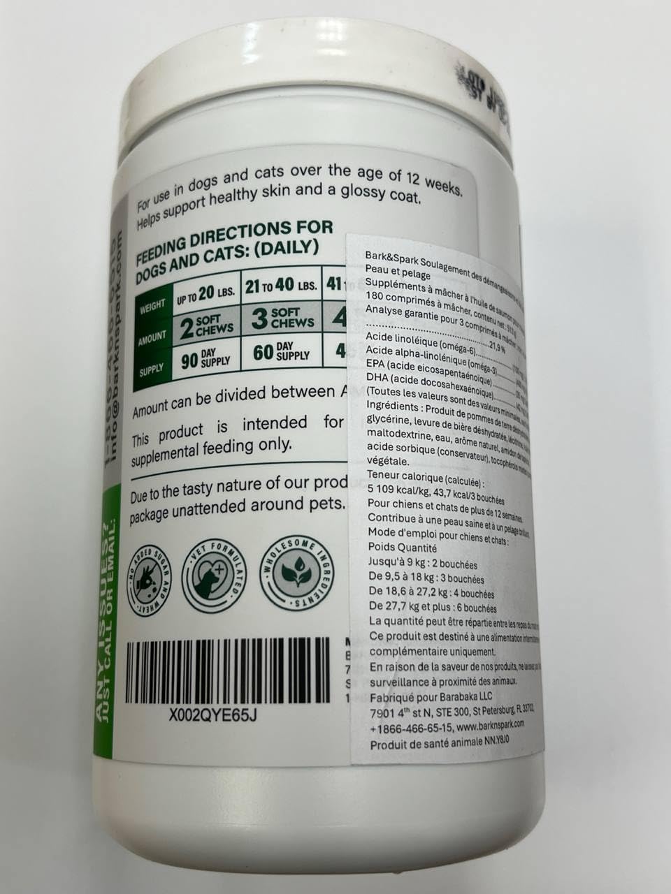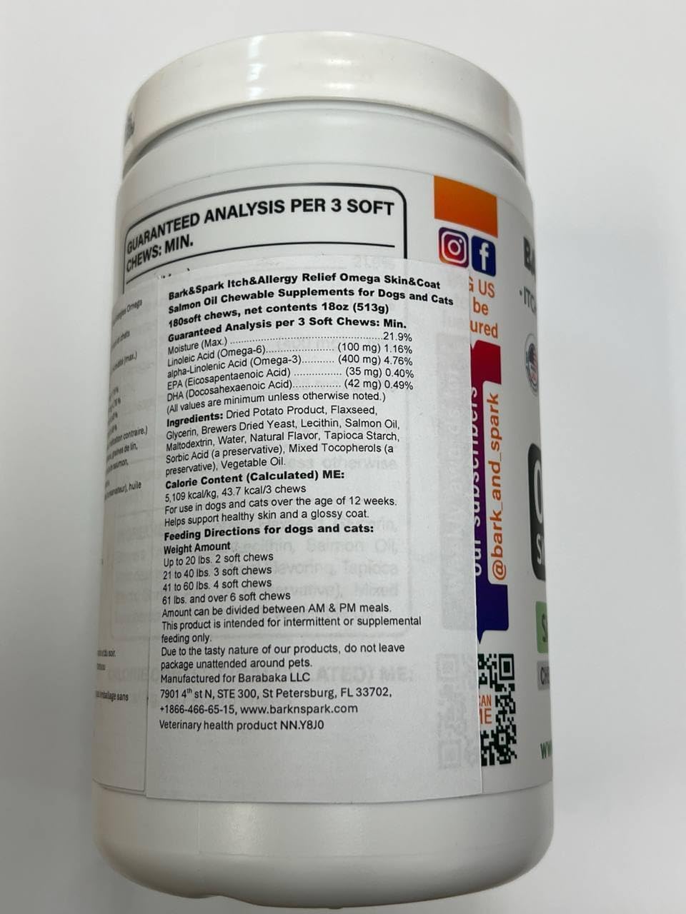 - Bark&Spark Commitment - we are keen to give best to our furry customers and we take NO compromise when it comes to product quality. Our omega 3 bites are made in the USA, with human grade ingredients.