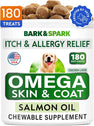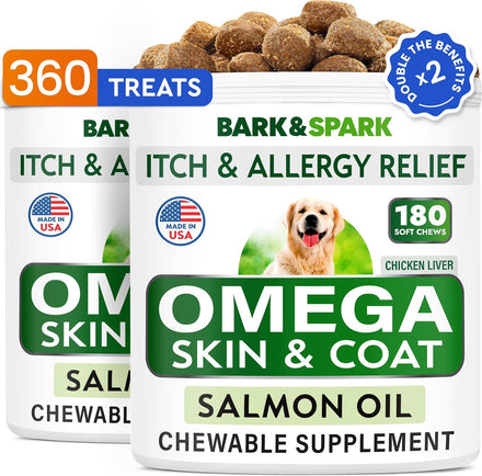 - Itch & Allergy Relief with Omega-3 for Dogs - with 500mg of Omega (EPA+DHA) per serving, our chewable supplement helps with hot spots, dry itchy skin, ease itching, irritated skin, stops shedding.