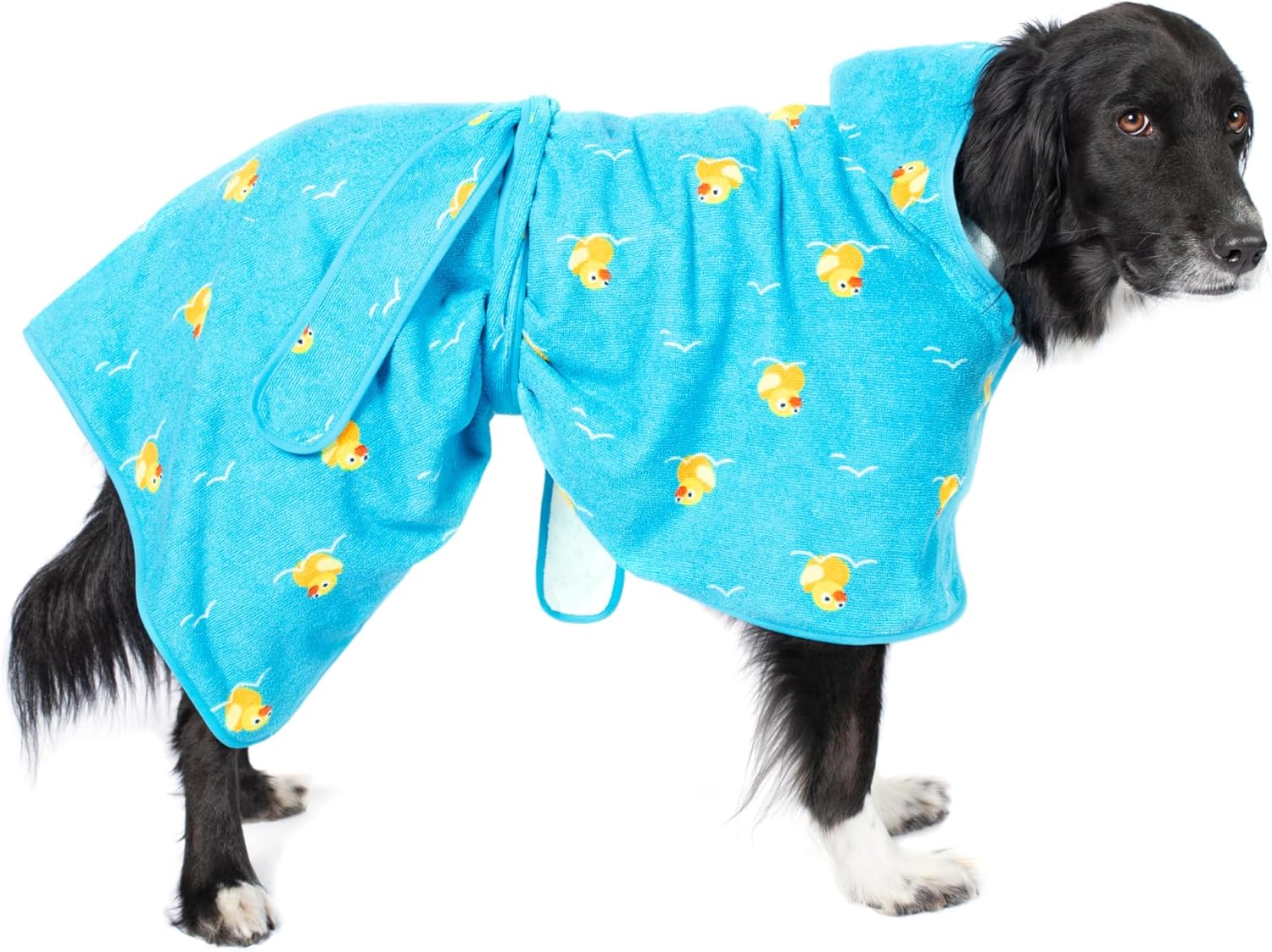Barkbox Dog Bathrobe Fast Drying with Hook and Loop Closure & Wrap Tie Snuggle, Cute Dogs Clothes, Easy to Clean, Machine Washable, Dog Coats and Tumble Dry Low - Rubber Duck, Large