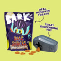 - SPOOKY 2-IN-1 FUN: Includes the Drac Casket treat-dispensing toy and Drac Snacks soft baked pumpkin dog treats; Perfect for festive playing and snacking