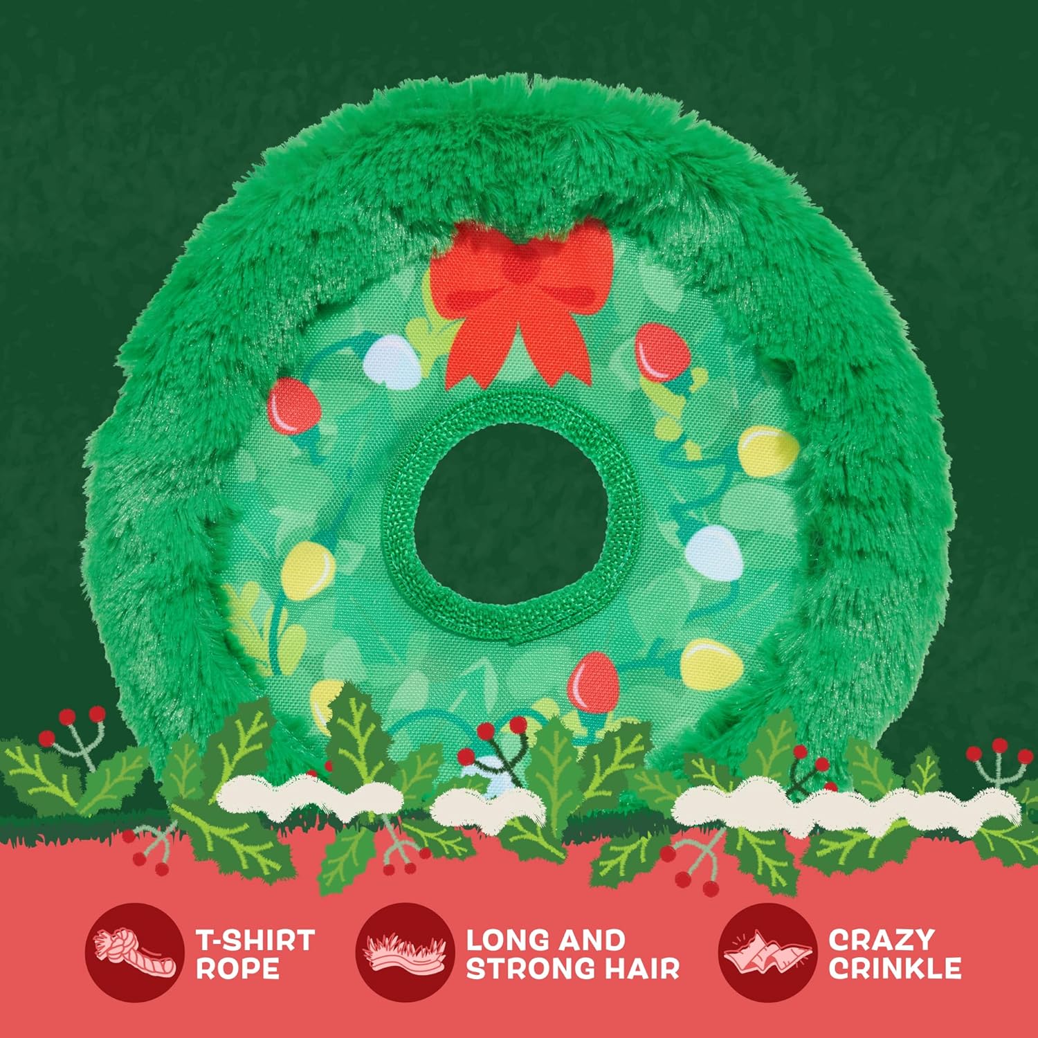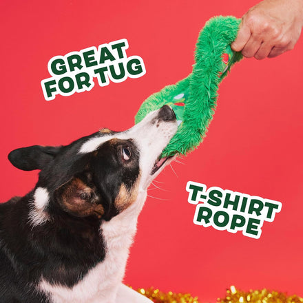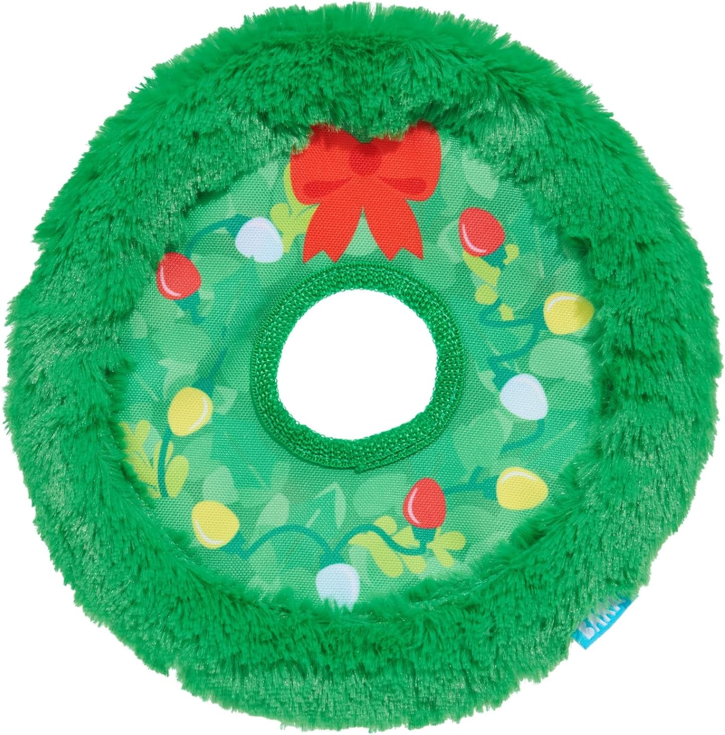 Barkbox Get Lit Wreath Dog Toy – Holiday Fetch & Fling Disc with T-Shirt Rope, Crazy Crinkle & Long Plush Hair – Durable Holiday Play Toy for Dogs