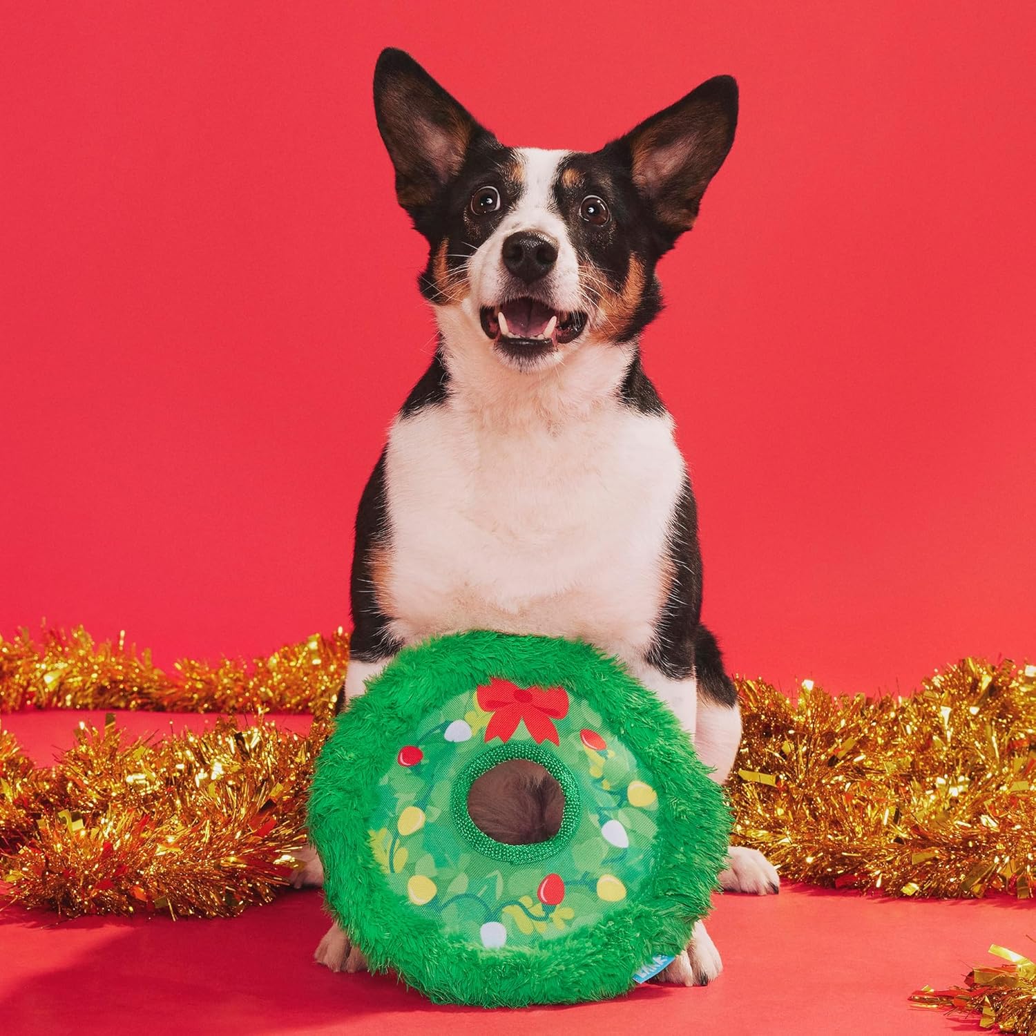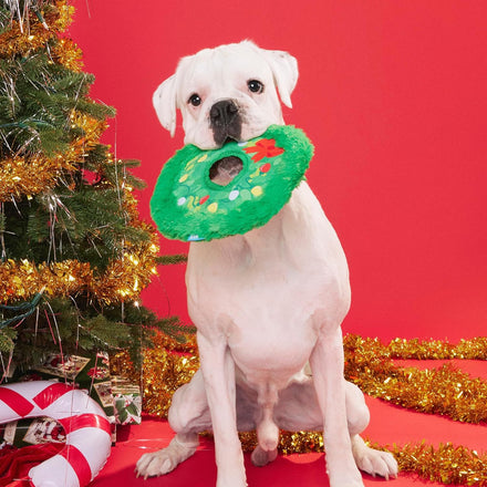 Get ready to Get Lit this holiday season! The BARK Holiday Wreath Toss is the ultimate fetch and fling toy that brings festive fun to every play session. Built with durable T-shirt rope and soft plush, this wreath-shaped disc is made for tossing, tugging, and celebrating all season long. With crazy crinkle, long and strong plush hair, and no messy fluff, this toy delivers maximum fun with zero cleanup.