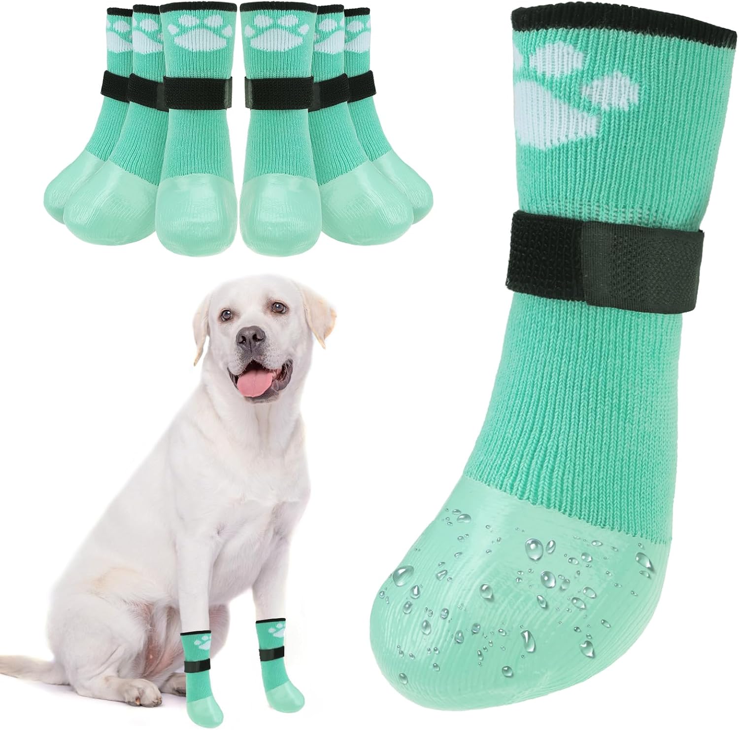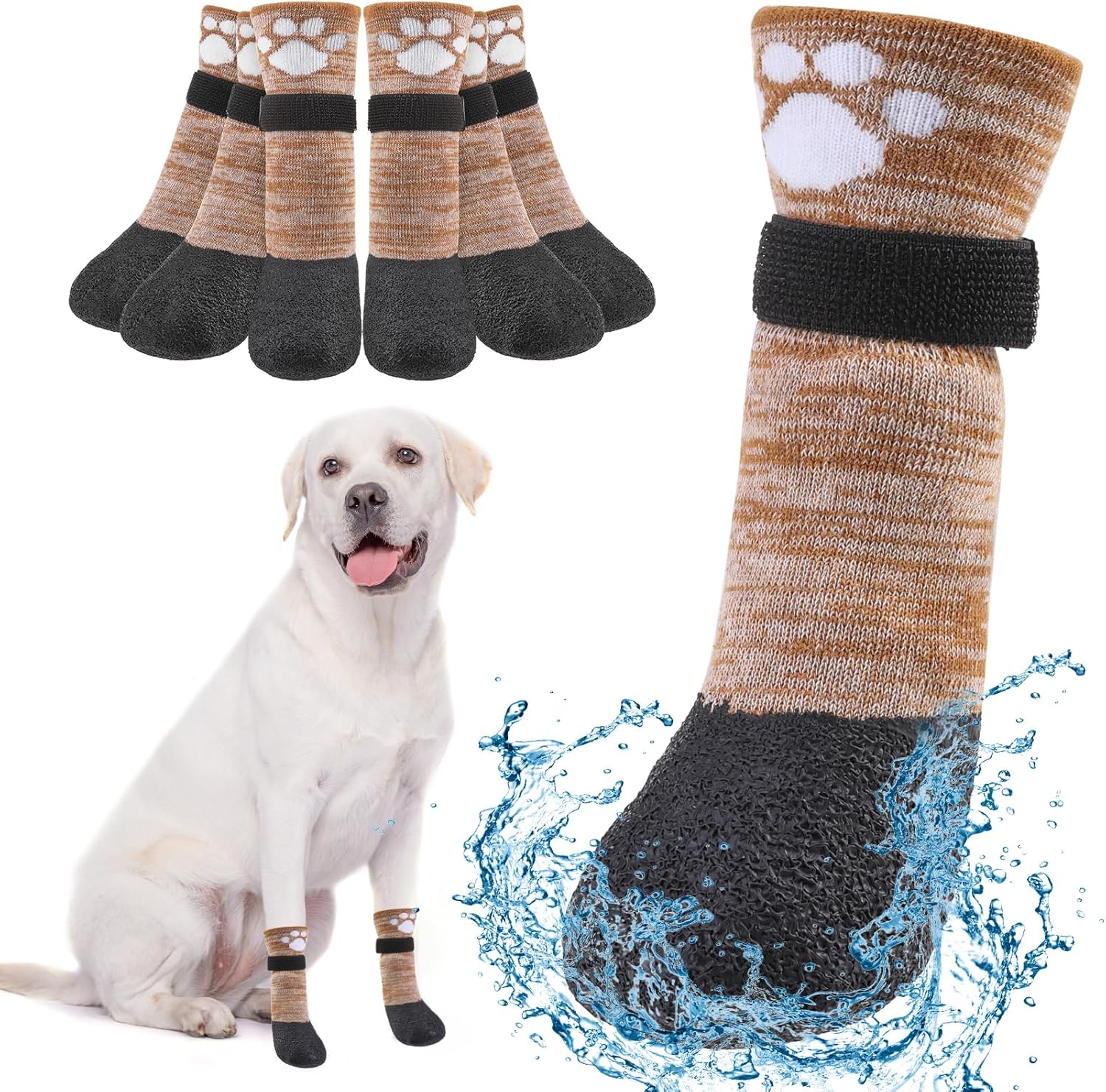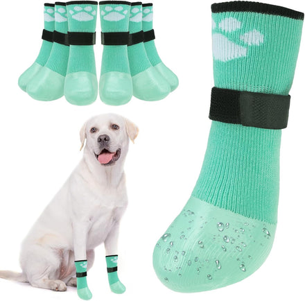 BEAUTYZOO Anti Slip Dog Boots & Paw Protectors for Hot Pavement to Prevent Licking,Waterproof Dog Shoes for Small Medium Large Senior Dogs,6 PCS Grip Socks Rain Booties for Dogs Paws Outdoor Walking