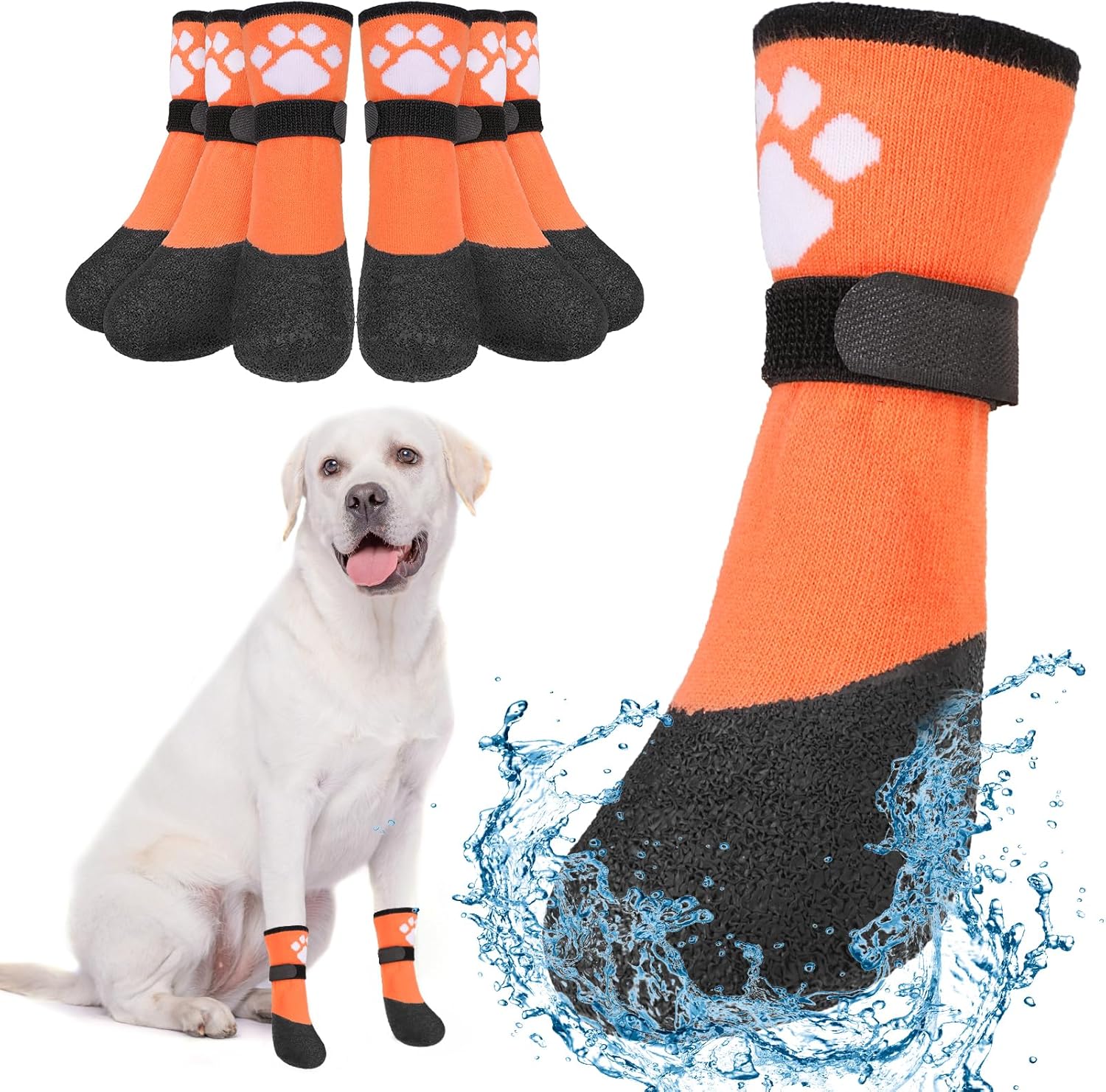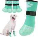 SAFETY & CONFIDENCE: The straps are away from the dog sock opening and equipped with fastening buckles, and the dog boot opening is wide and folds down, both of which effectively prevent the straps from slipping off and hurting your dog's feet. In addition, putting these paw protection socks on your dog prevents dogs from licking wounds and slipping.