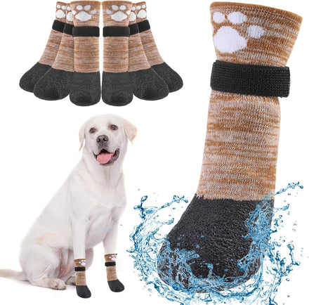 WATERPROOF DOG BOOTS FOR HARDWOOD FLOORS: Our dog boots & paw protectors are surrounded by durable rubber for a stronger grip and better anti-slip properties. Maximum traction on hardwood floors and other slippery surfaces make them the perfect socks for dogs with joint and mobility issues, also suitable for puppies and senior dogs. Pets wearing dog shoes can also protect our sofas, carpets, carseats and furniture.