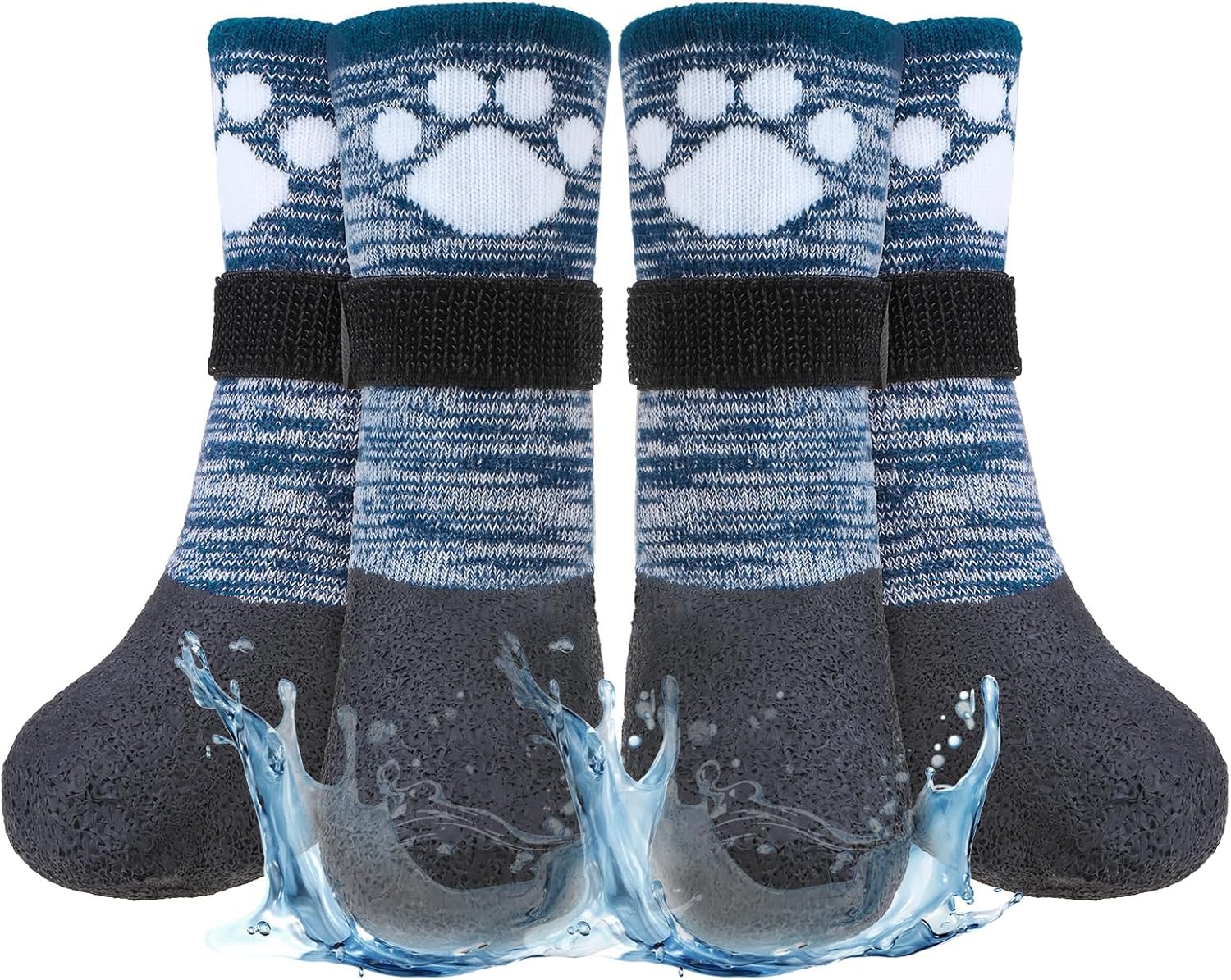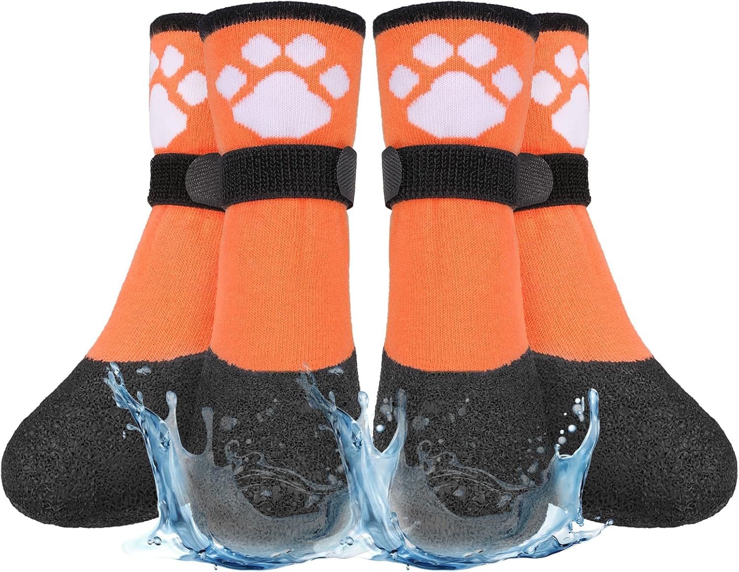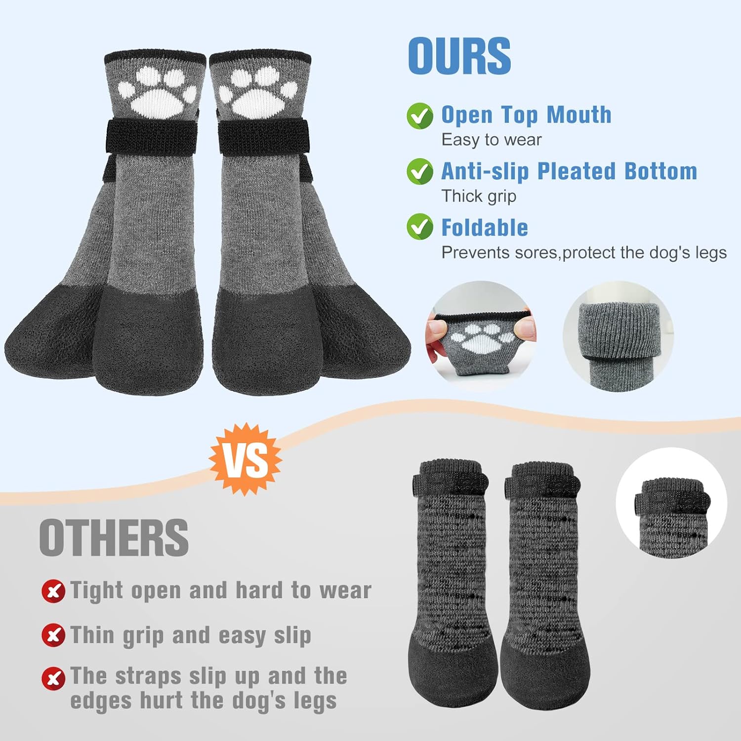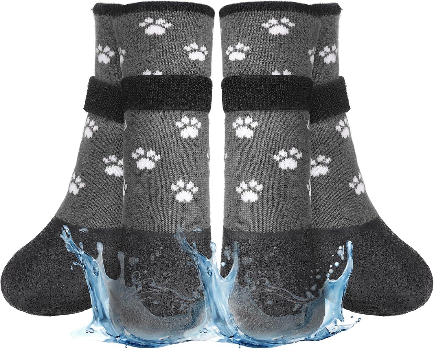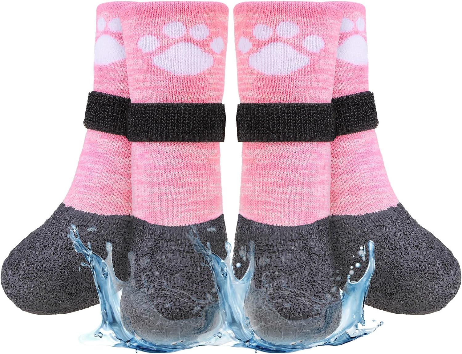 ANTI-SLIP & WATERPROOF: Our dog boots are surrounded on all sides by a pleated durable rubber underneath, which provides a stronger grip and is more slip resistant. Our pet paw protector socks are very friendly to both puppies and older dogs. These anti-slip dog socks can be worn as dog boots, on wooden floors, indoors and outdoors.