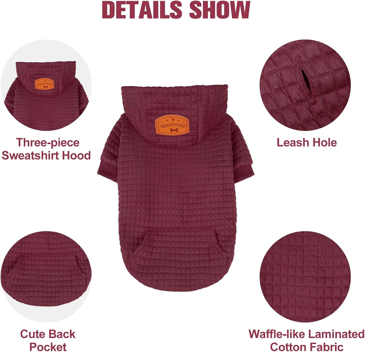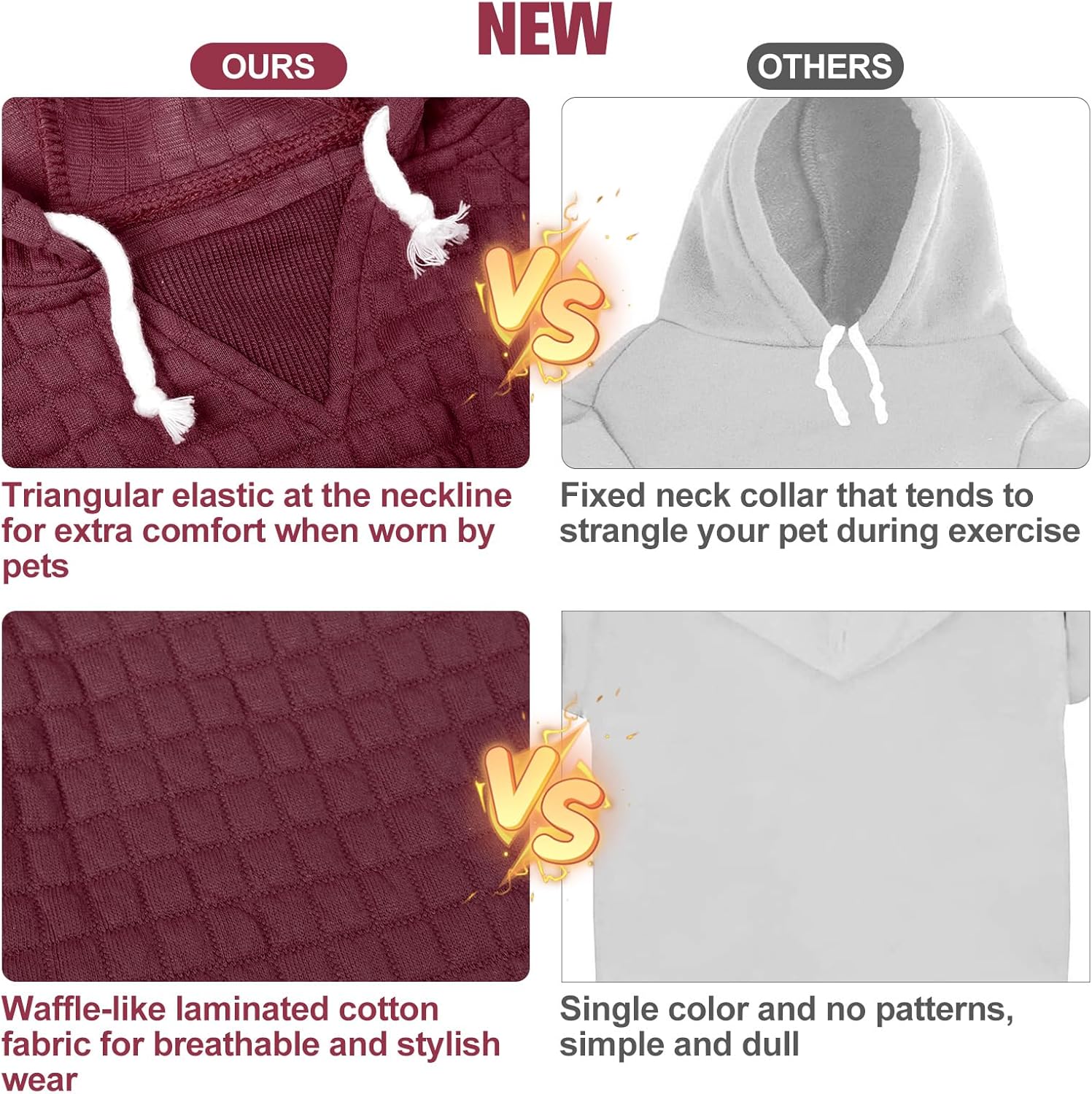 WARM & BREATHABLE : Made from 95% polyester and 5% spandex, with a waffle-like laminated cotton. Our pet long sleeve tops coat is soft and comfortable, fresh and natural to wear and will keep your pet warm in cold weather without feeling stuffy. Soft and smooth, this dog hoodie is non-irritating and will not cause damage to your pet's skin.