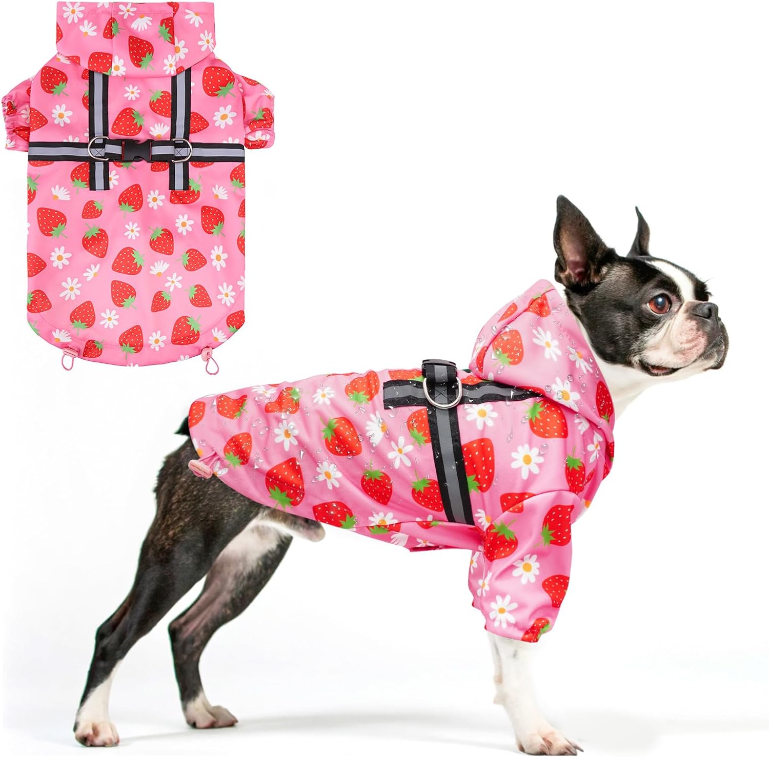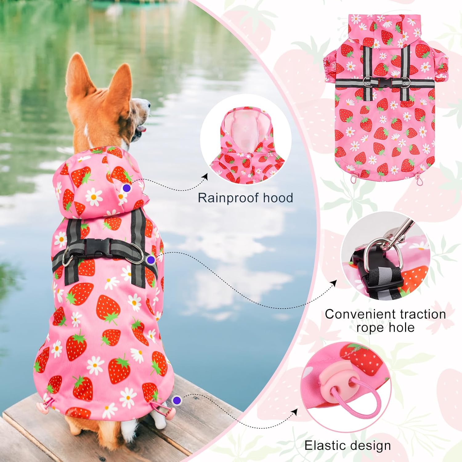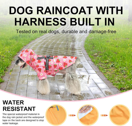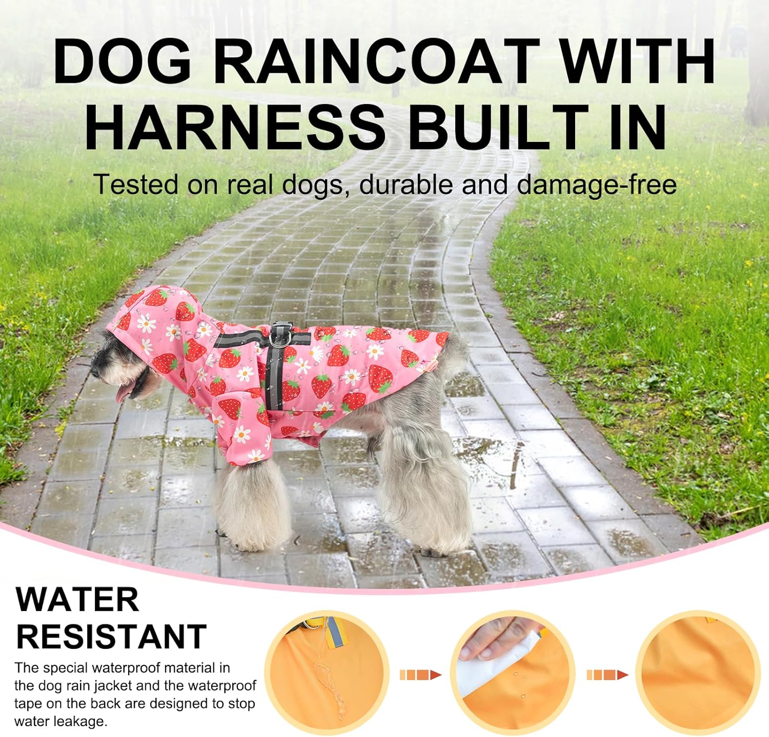 DOG RAINJACKET WITH HARNESS- Dog Raincoat and Dog Harness 2 IN 1 Design, as a rain coat with harness built in, it have waterproof out layer ensures that you dog stay protected and comfortable during rainy and windy weather. You can easily take your dog outside just by buckling the leash. No need to put an extra collar on your dog, very convenient.