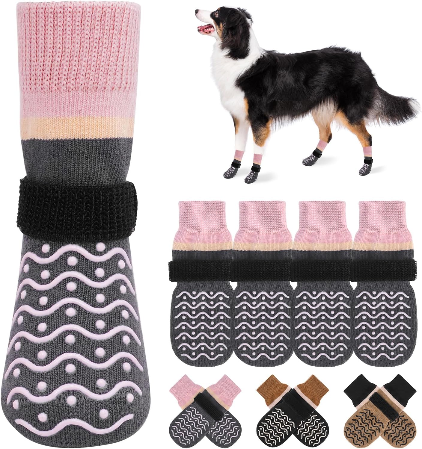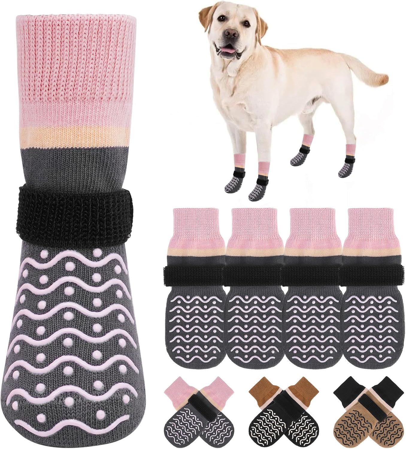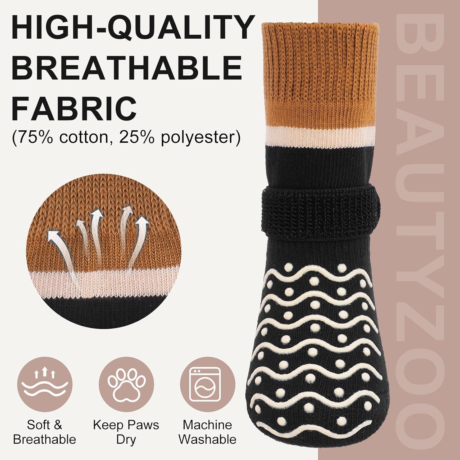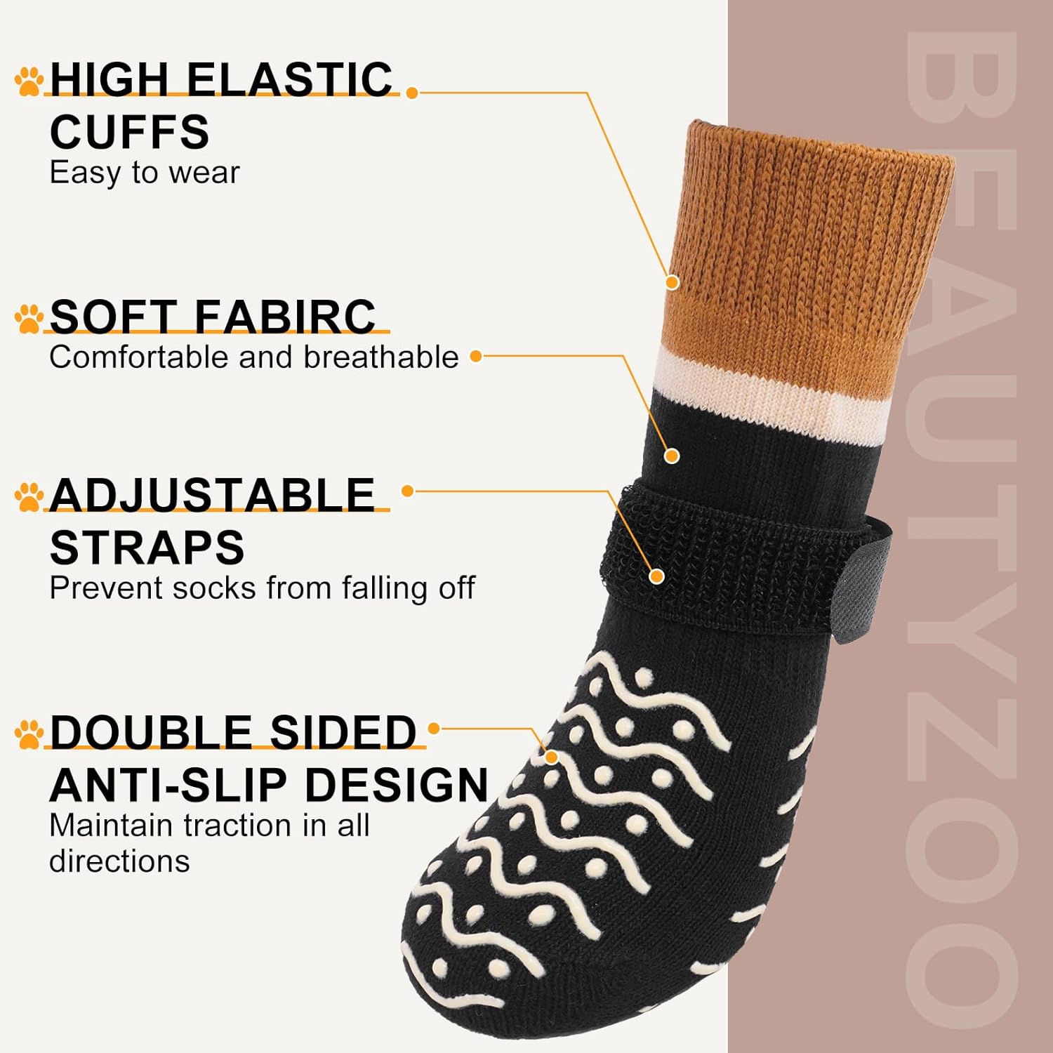 BEAUTYZOO Dog Socks, Non Slip Dog Socks to Prevent Licking Paws -Dog Boots & Paw Protectors with Grippers on Hardwood Floors, Dog Shoes for Hot/Cold Pavement Small Medium Large Senior Dogs Booties