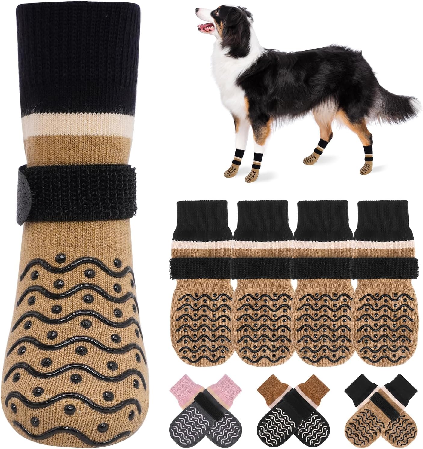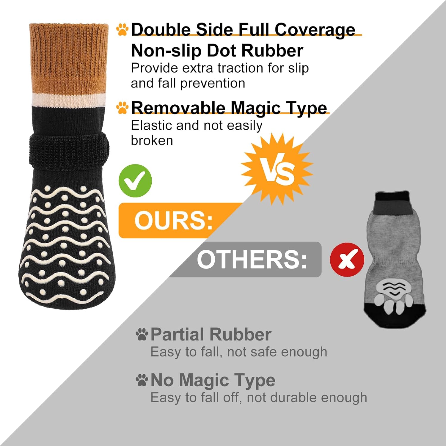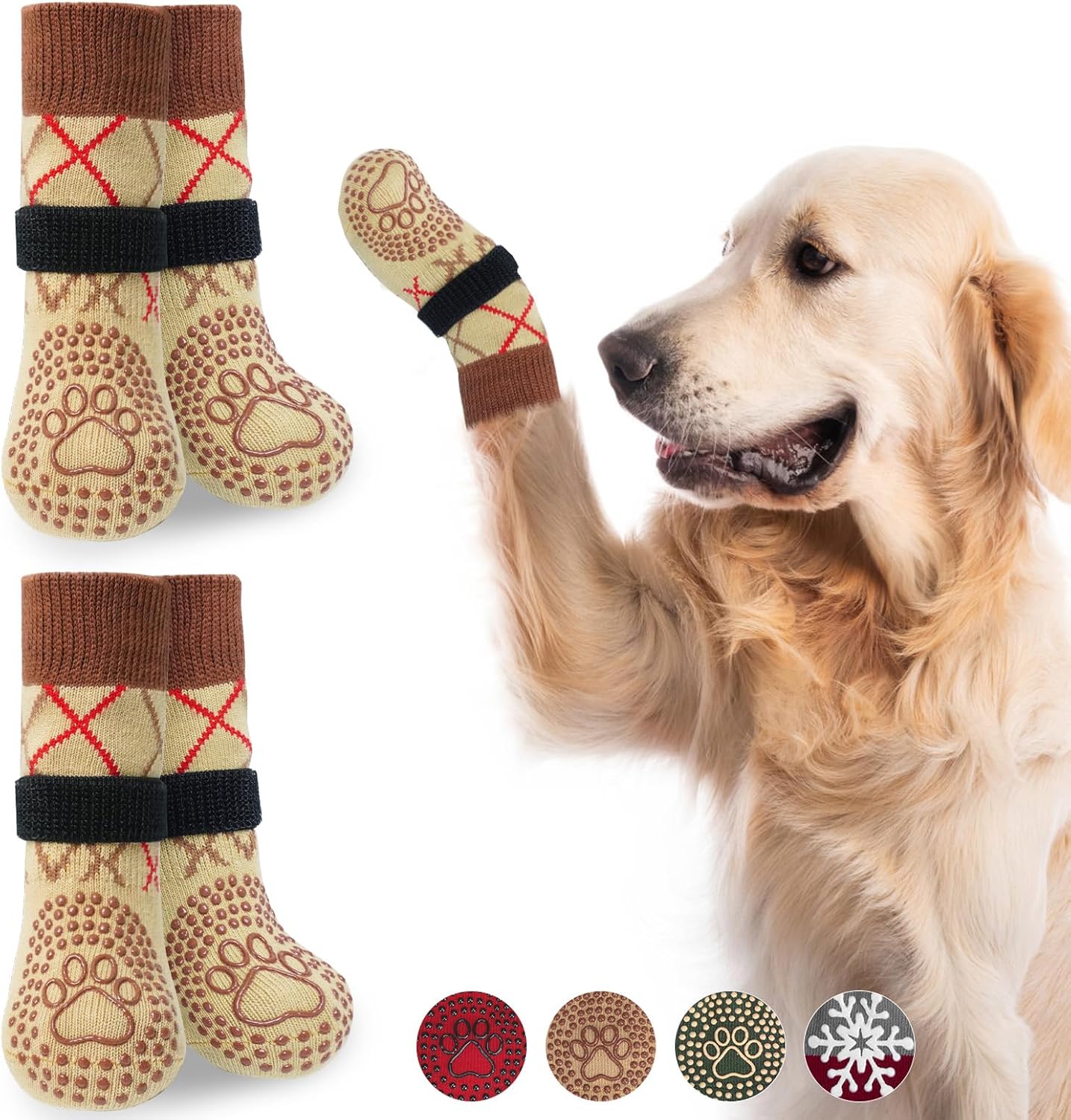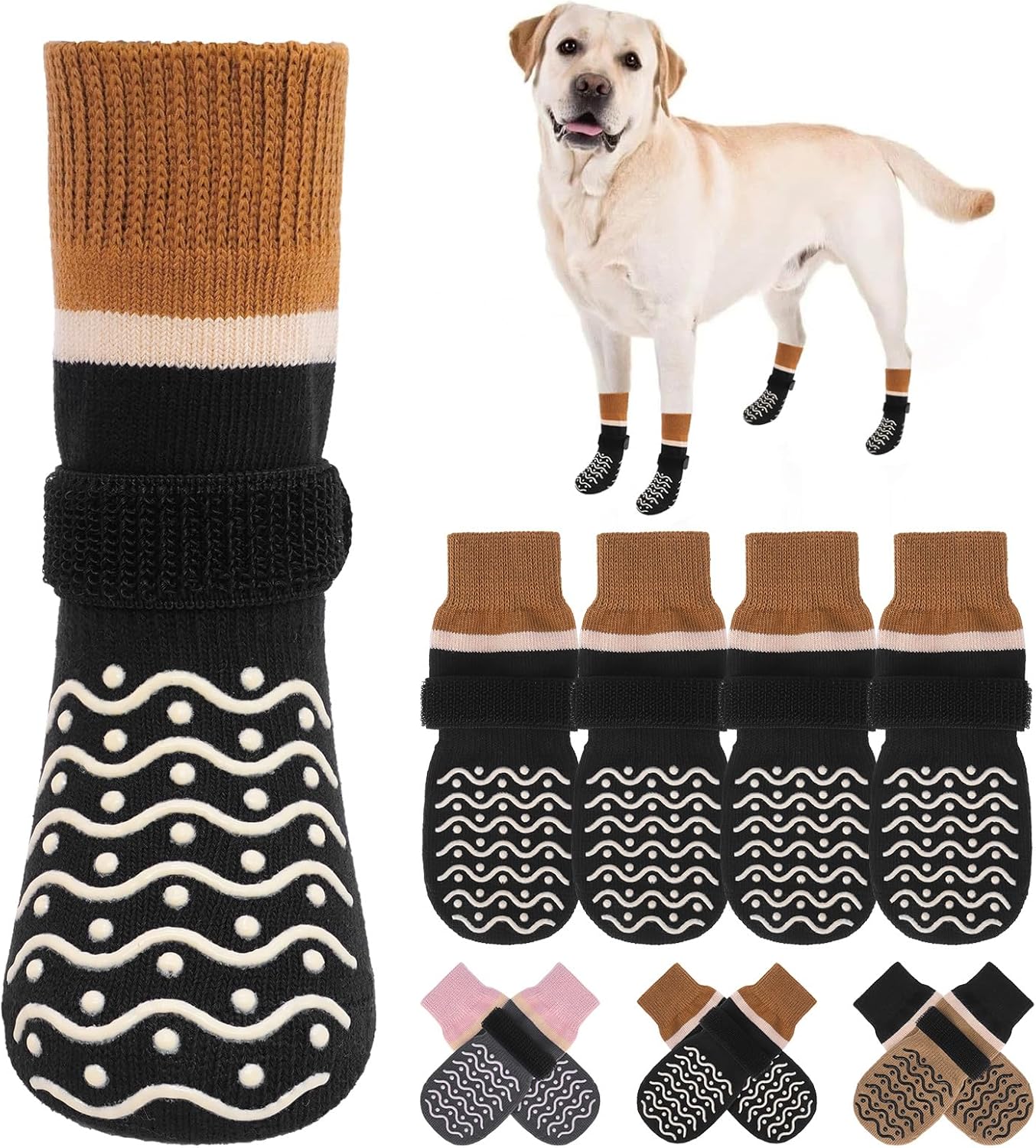 BEAUTYZOO Dog Socks, Non Slip Dog Socks to Prevent Licking Paws -Dog Boots & Paw Protectors with Grippers on Hardwood Floors, Dog Shoes for Hot/Cold Pavement Small Medium Large Senior Dogs Booties