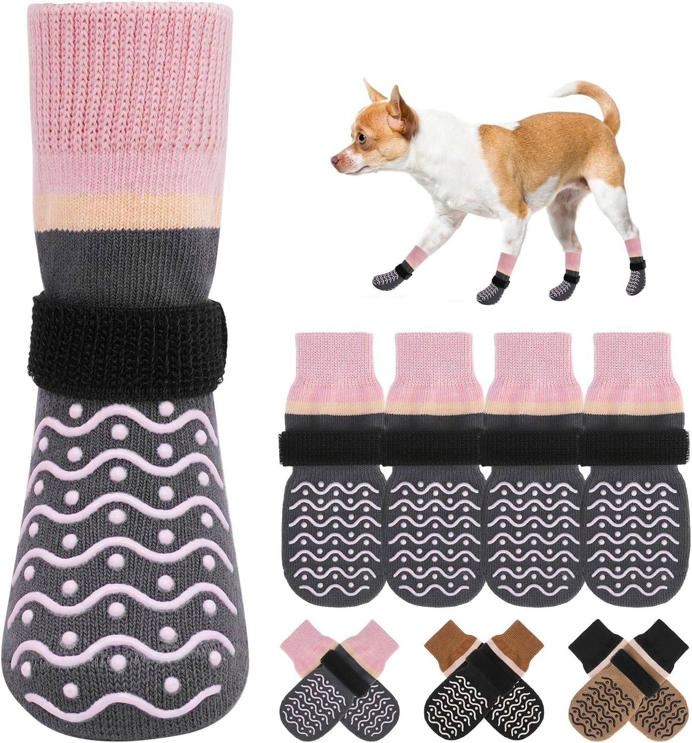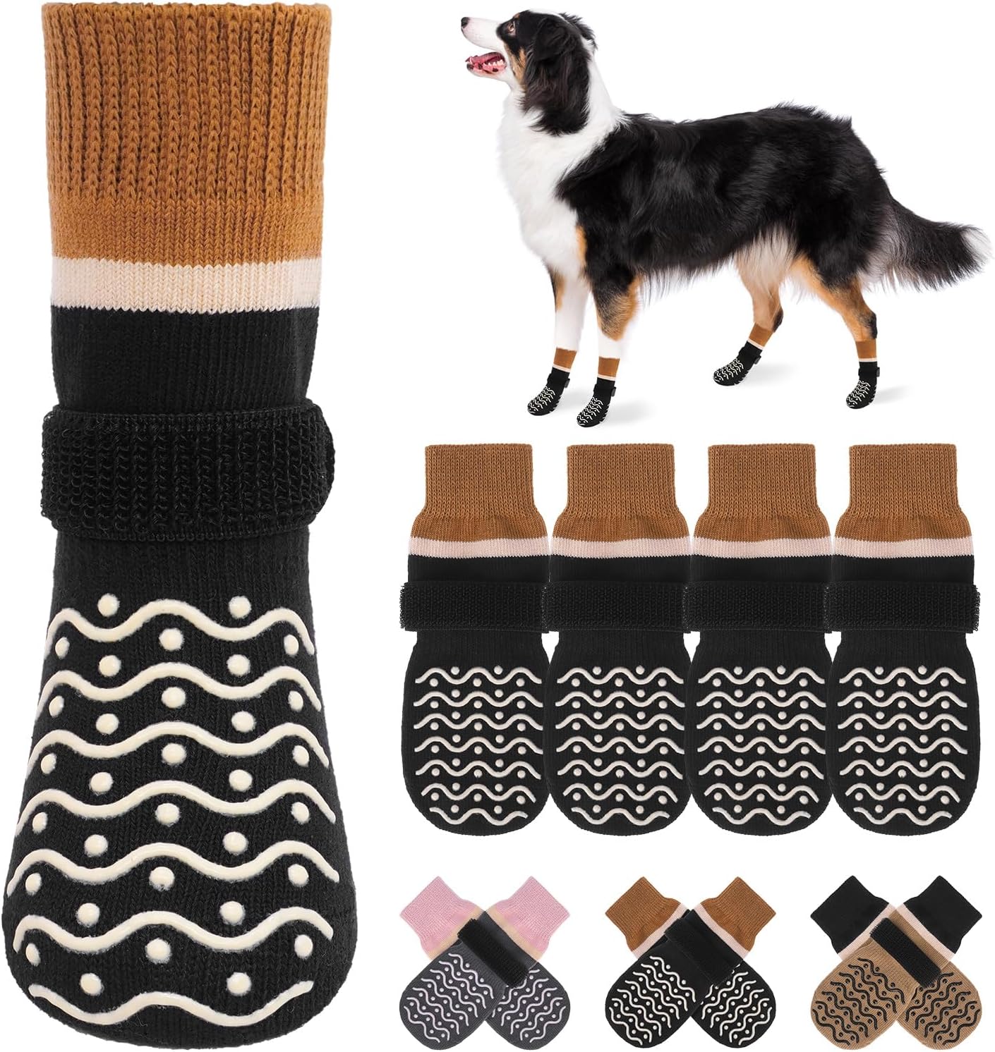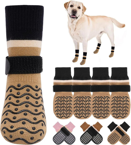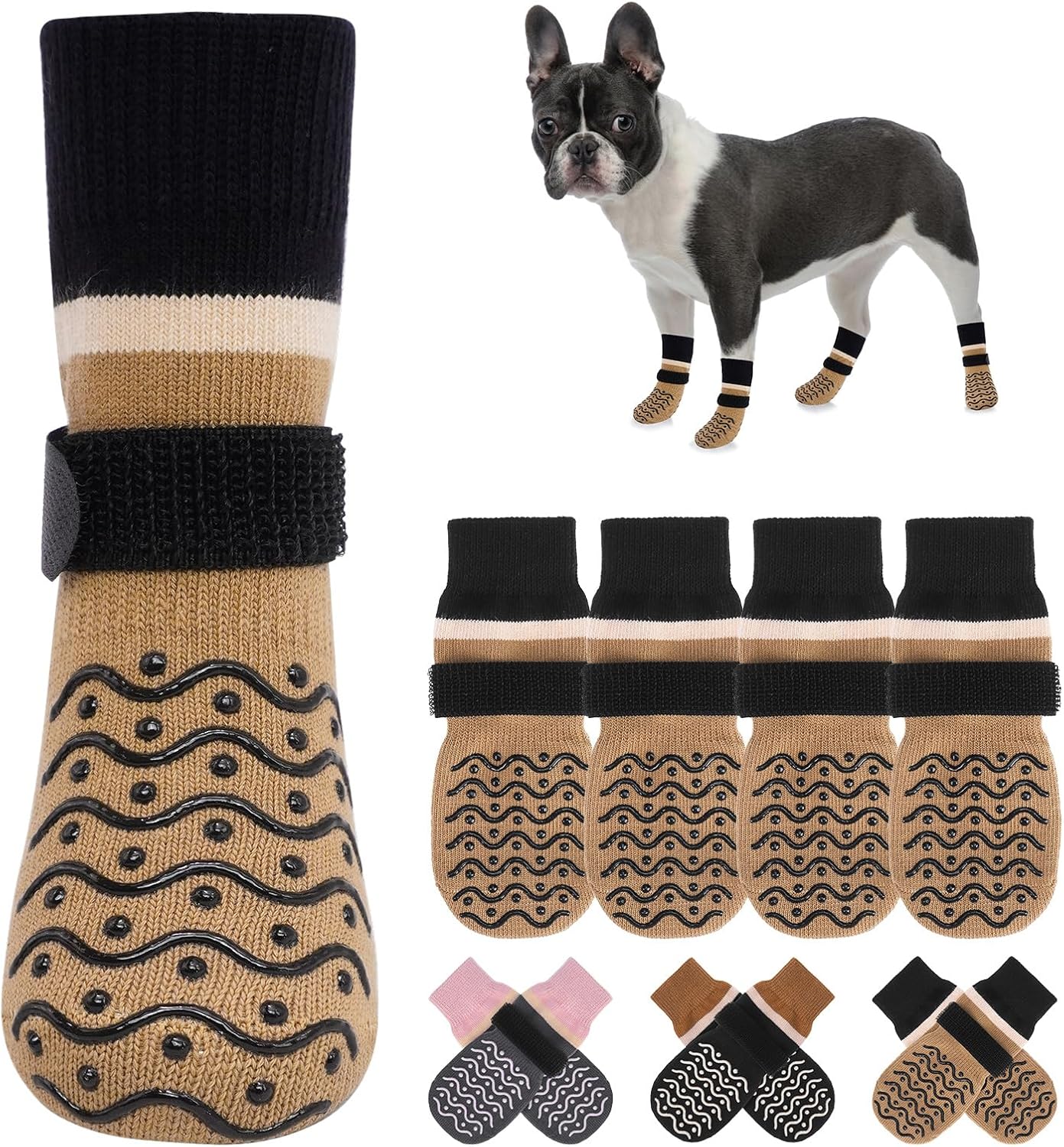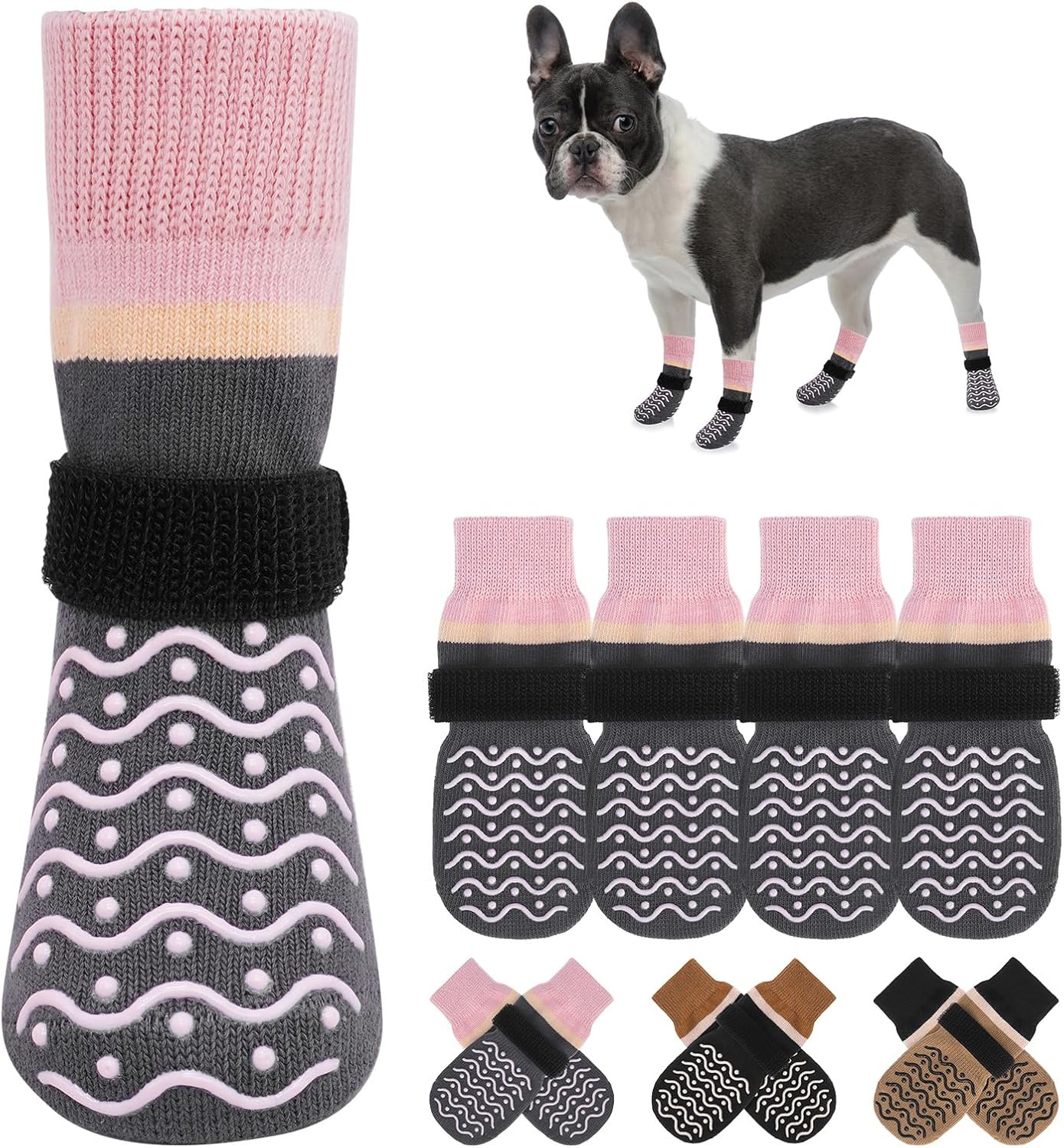BEAUTYZOO Dog Socks, Non Slip Dog Socks to Prevent Licking Paws -Dog Boots & Paw Protectors with Grippers on Hardwood Floors, Dog Shoes for Hot/Cold Pavement Small Medium Large Senior Dogs Booties