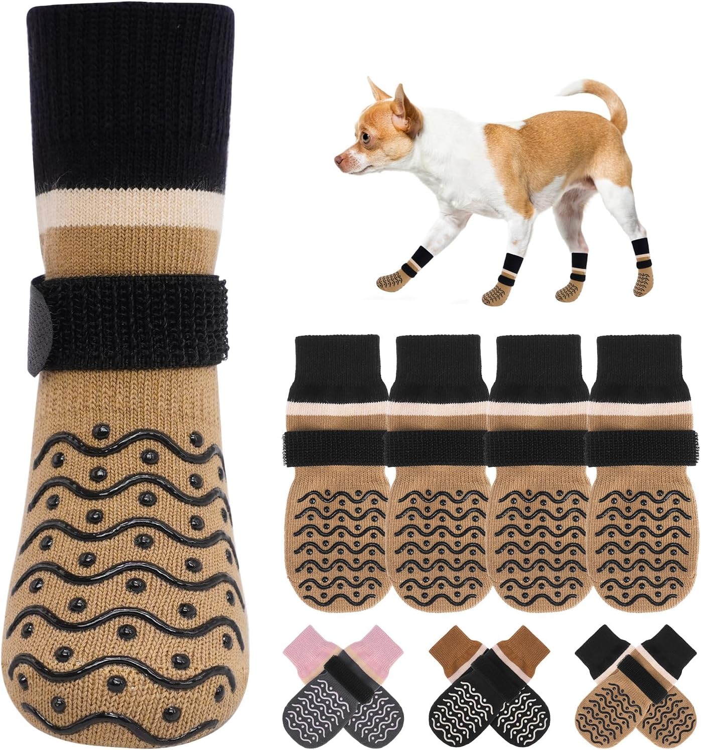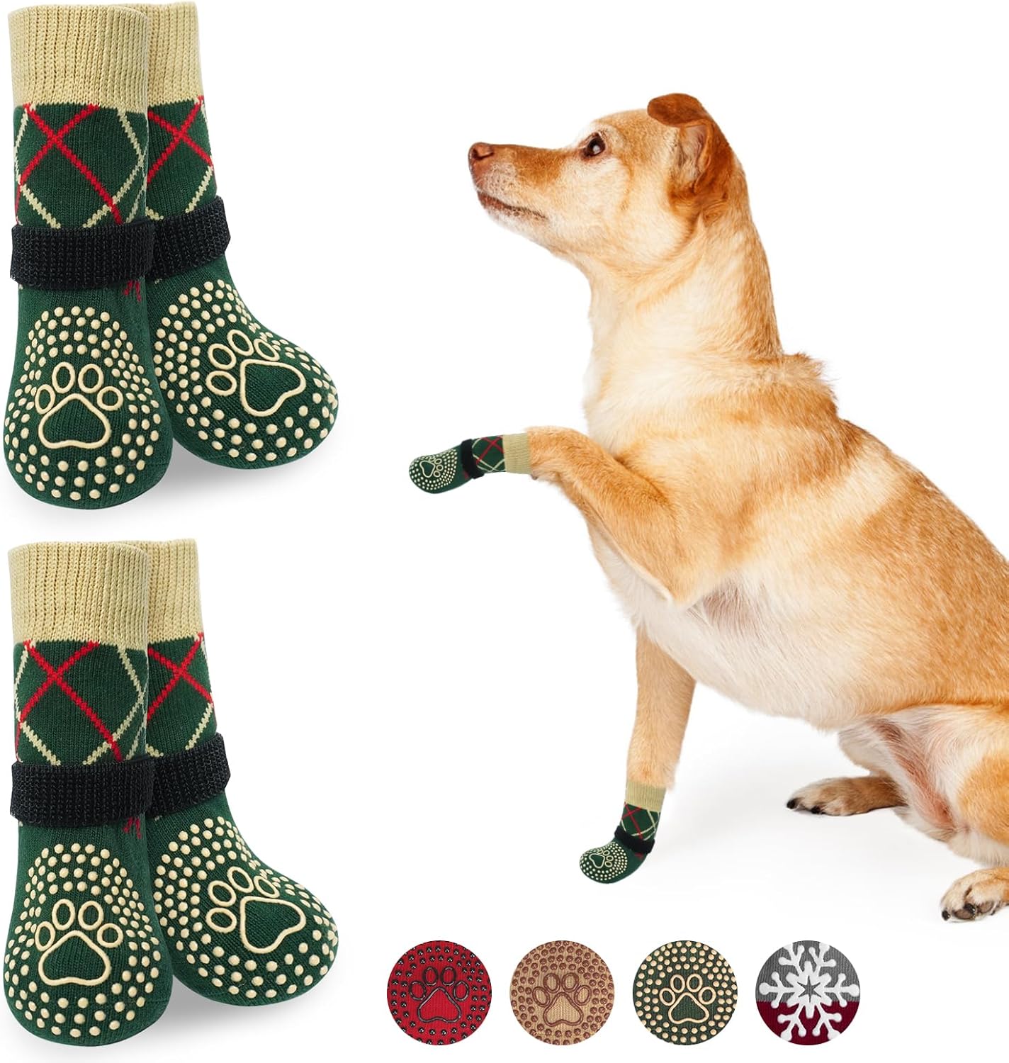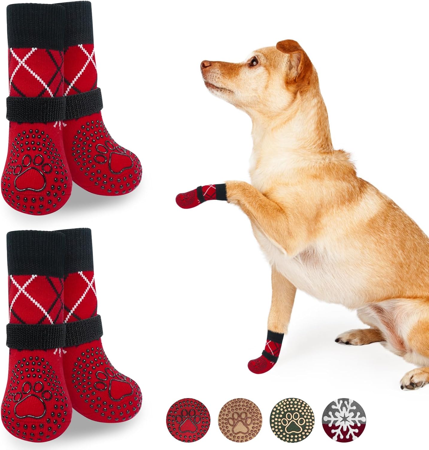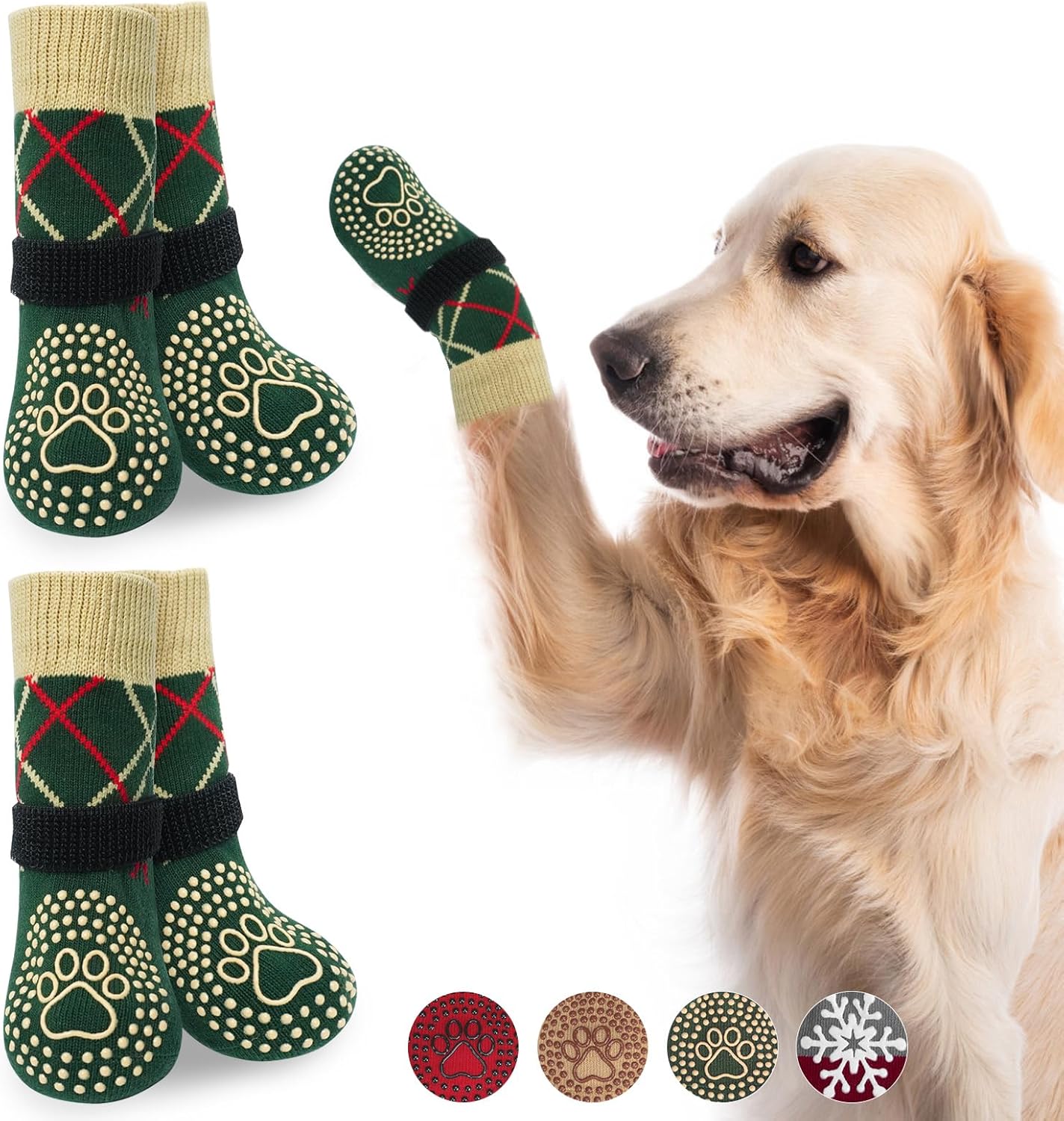 BEAUTYZOO Dog Socks, Non Slip Dog Socks to Prevent Licking Paws -Dog Boots & Paw Protectors with Grippers on Hardwood Floors, Dog Shoes for Hot/Cold Pavement Small Medium Large Senior Dogs Booties