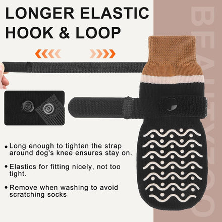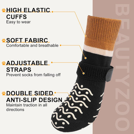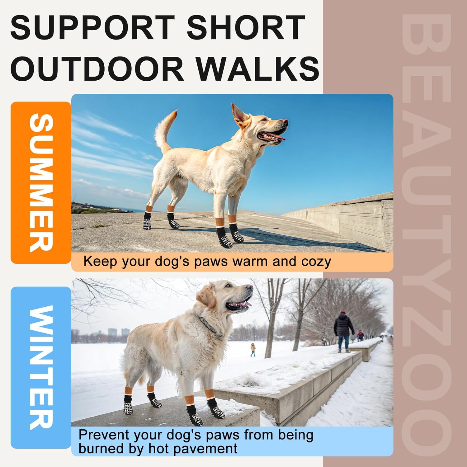 PROTECTION FOR ACTIVE PAWS: Prepare your dog for every season with BEAUTYZOO Dog Socks! These versatile paw protectors for dogs are great for both indoor and outdoor use. Whether it's hot pavement in the summer or icy ground in the winter, they protect paws from sharp objects, cold surfaces and harsh weather conditions. They also prevent furniture scratches, keep paws clean from dirt and protect your floors from damage. Perfect for small dogs or larger breeds that love to play all year long