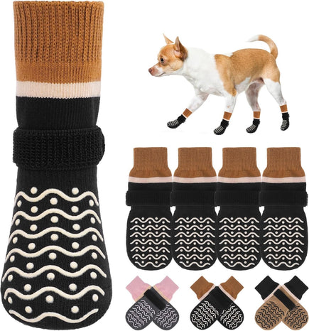 STYLISH DESIGN: Our dog socks come with a sleek striped design and dotted adhesive that not only enhances traction but also adds durability. The evenly distributed pressure helps the socks last longer. The striped pattern provides better stability, allowing your dog to move with confidence while looking stylish. Great for dogs who enjoy active play and pet owners who love practical yet fashionable accessories for their pets