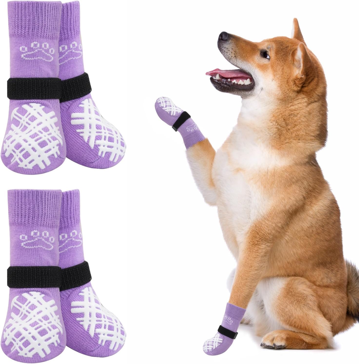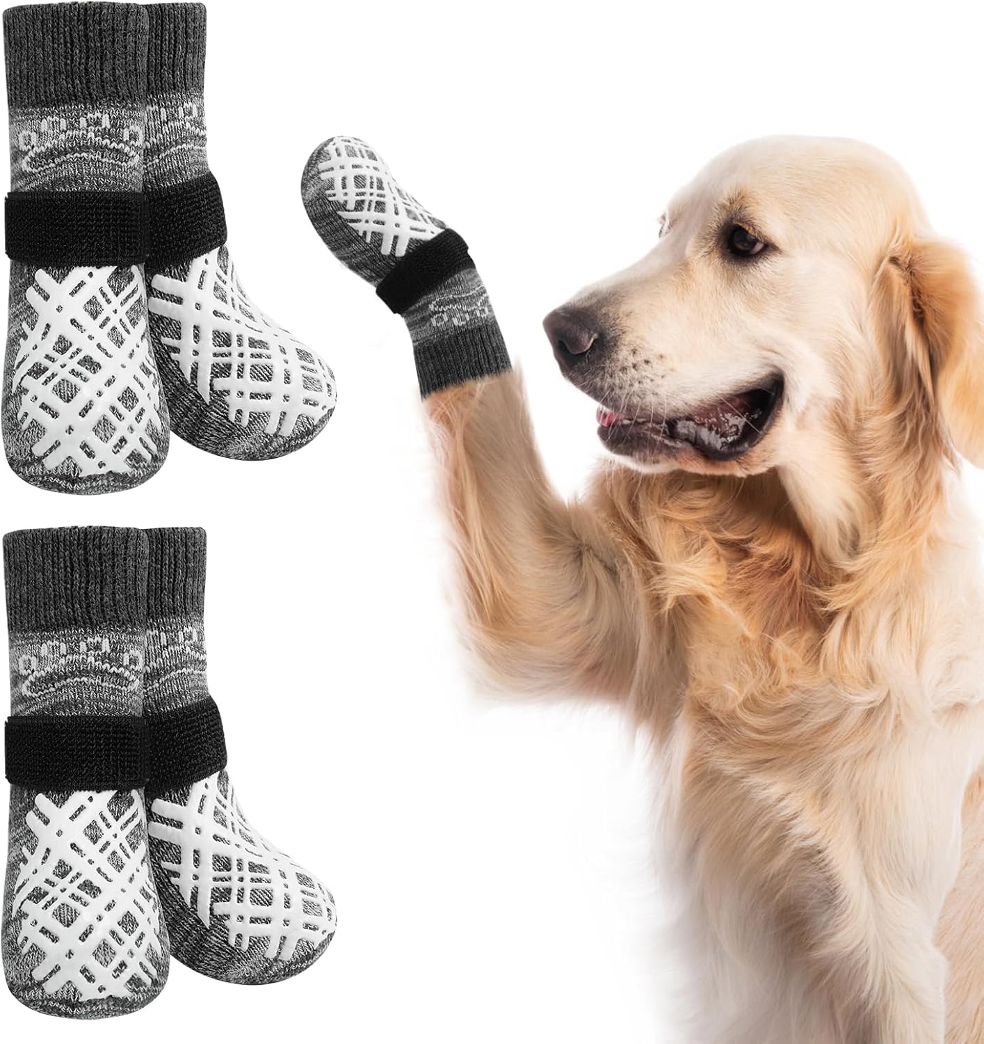 Size Matters: 3.5 inch paw width fit size X-Large.Please make sure to measure your pet before purchase. 4 pack of dog knitted socks are suitable for all sizes of dogs, including large dogs, small dogs, and senior dogs. They are also great for dogs with mobility issues, as they can provide added stability and support.