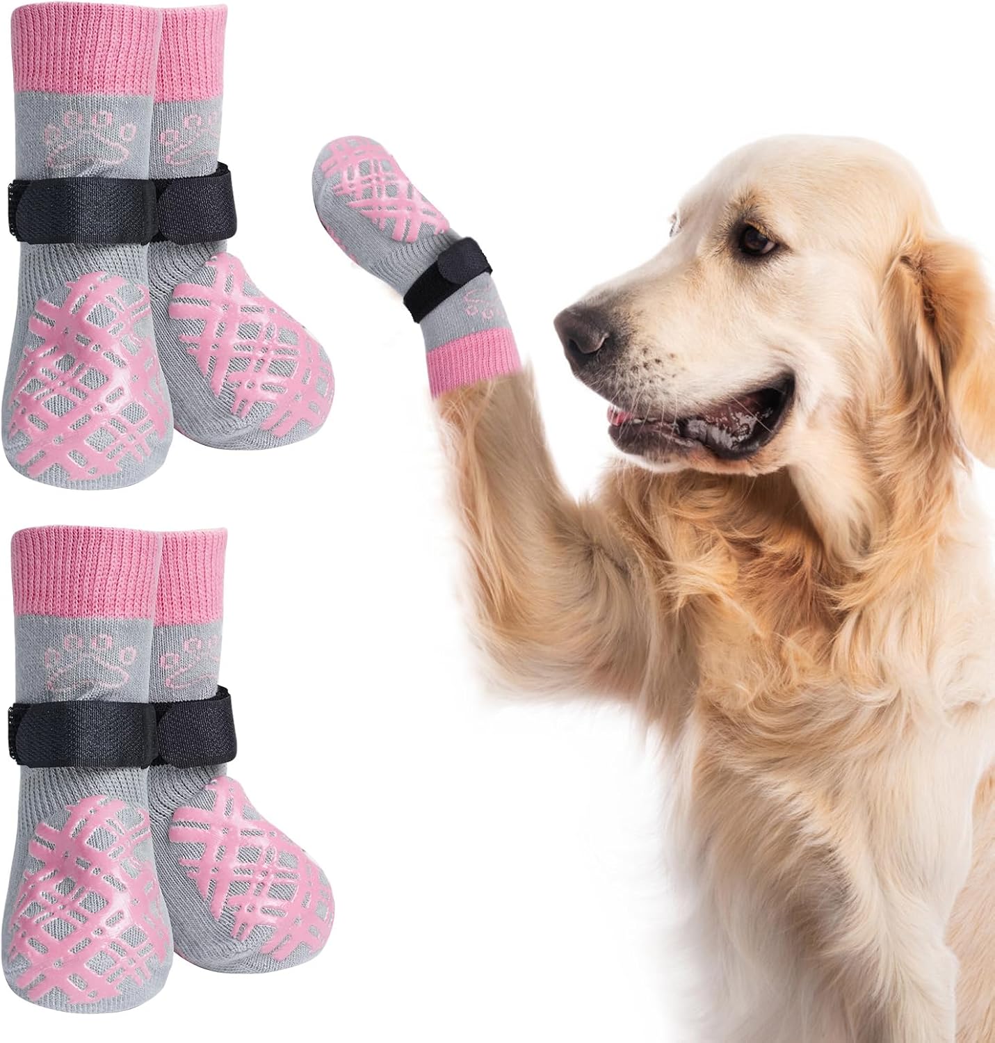 Comfortable & Adjustable Straps: The socks for dog are made of soft, breathable fabric that won't rub or chafe, ensuring your dog stays comfortable even when wearing them for long periods of time. The magic tape ensures a secure fit, so you don't have to worry about the socks falling off as your dog runs and plays.