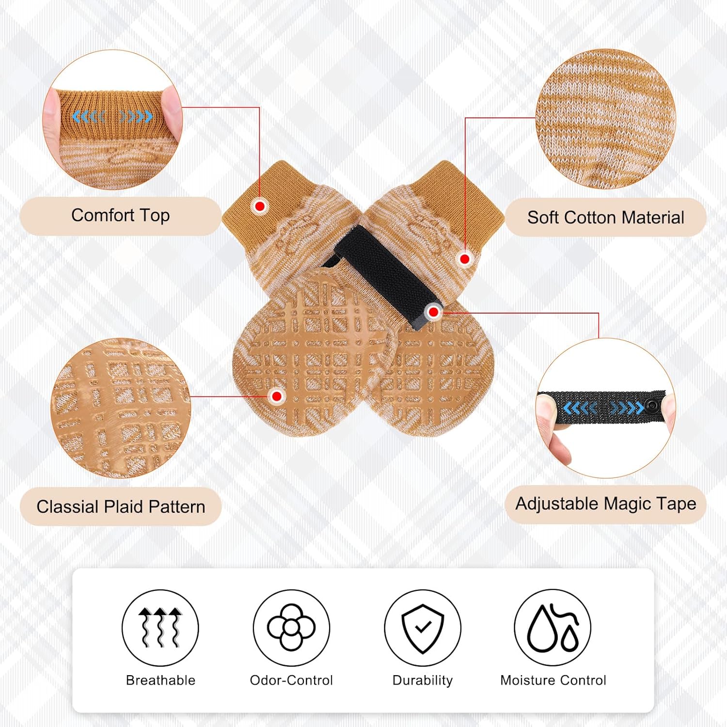 Multi-Functional: Dog socks with grips are the perfect solution for slippery hardwood floors, hot pavement, floor protection, and dog paw licking prevention. In addition to giving better traction to your dog and keep the dog's feet warm and comfortable in winter, dog socks can protect your furniture such as hardwood floors, wooden tables, sofas, etc. from being scratched by your dog's sharp claws.