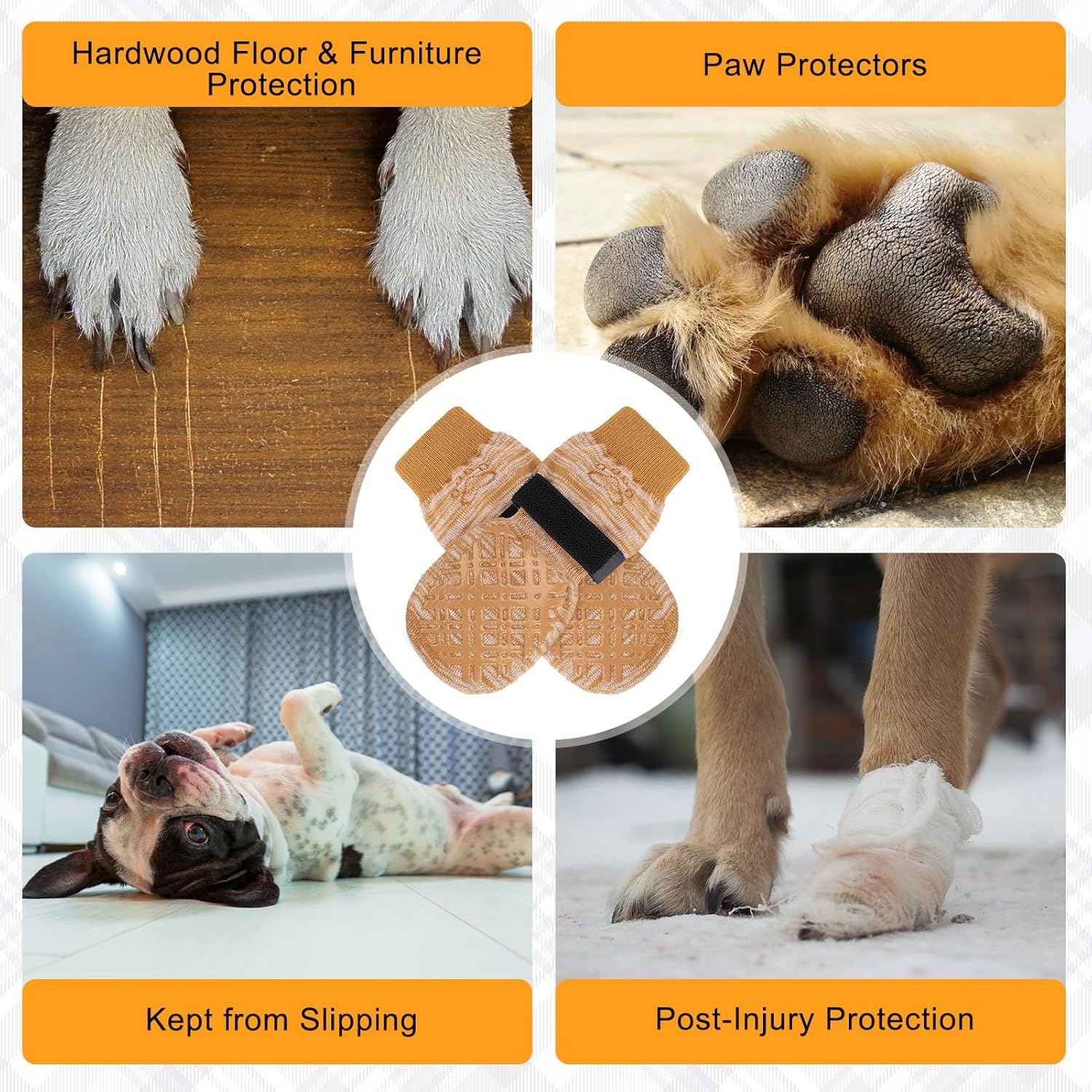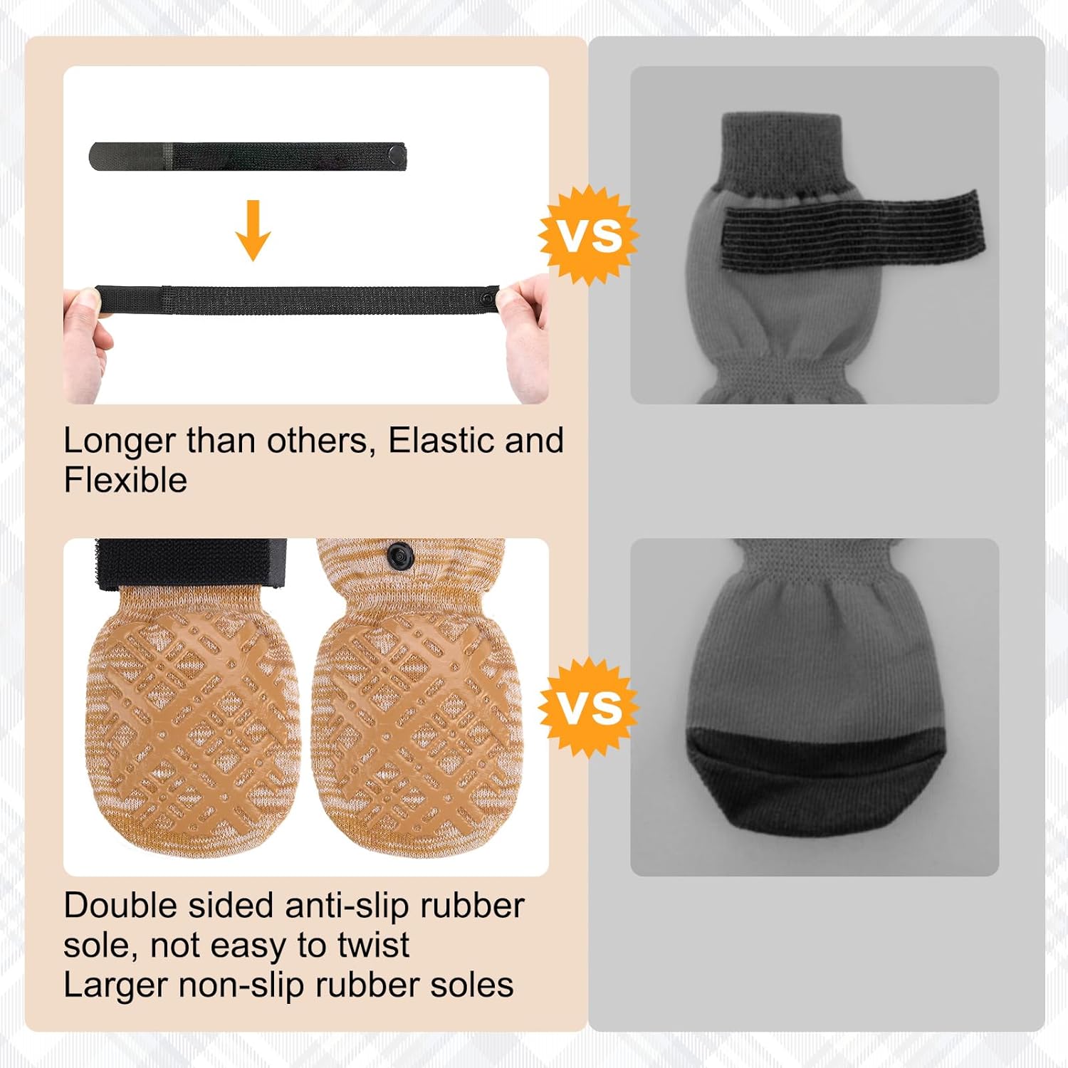 Multi-Functional: Dog socks with grips are the perfect solution for slippery hardwood floors, hot pavement, floor protection, and dog paw licking prevention. In addition to giving better traction to your dog and keep the dog's feet warm and comfortable in winter, dog socks can protect your furniture such as hardwood floors, wooden tables, sofas, etc. from being scratched by your dog's sharp claws.