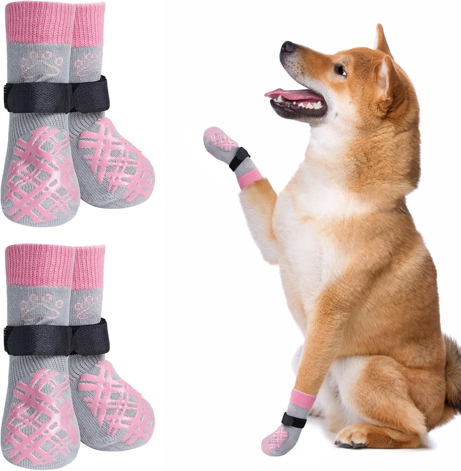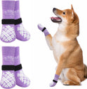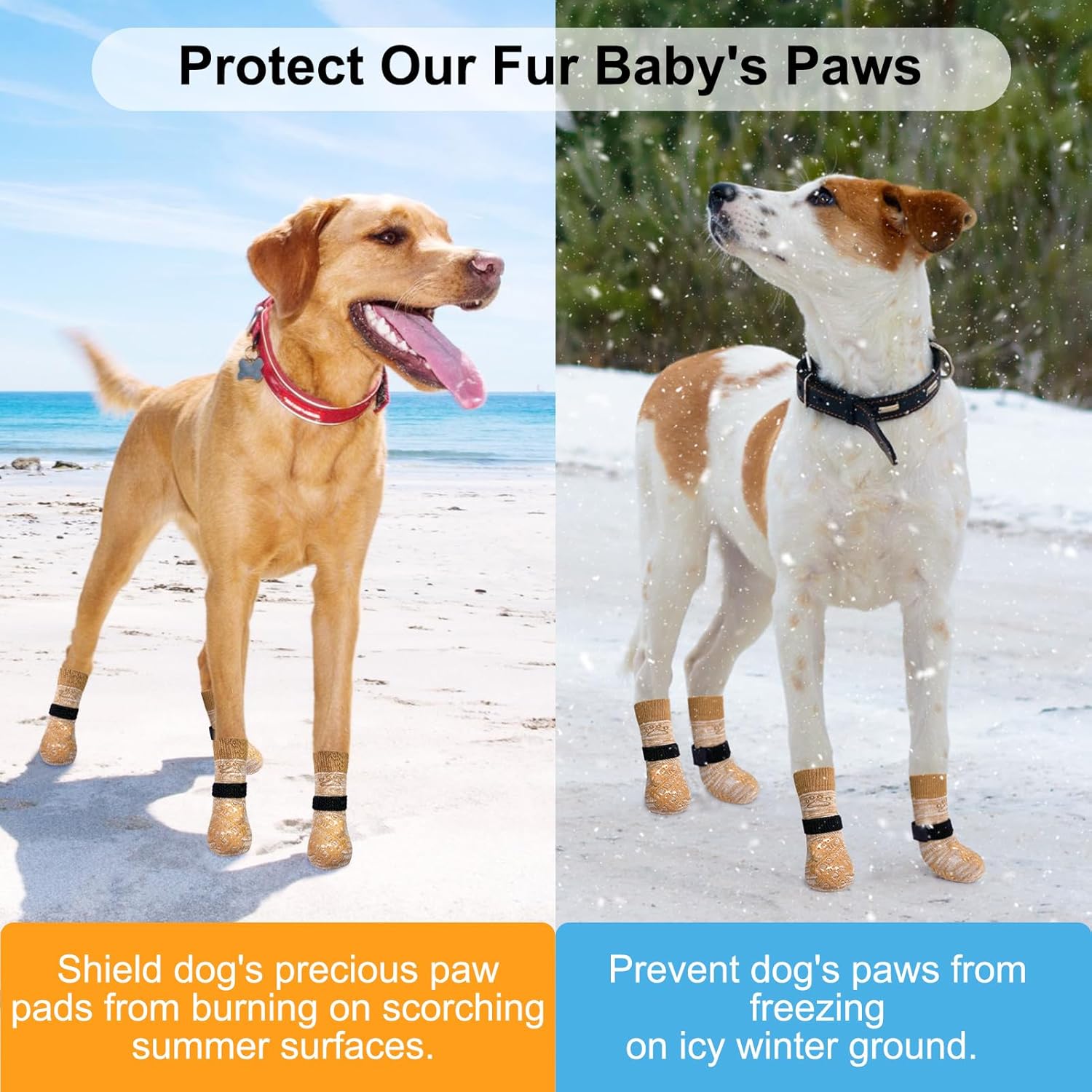 Comfortable & Adjustable Straps: The socks for dog are made of soft, breathable fabric that won't rub or chafe, ensuring your dog stays comfortable even when wearing them for long periods of time. The magic tape ensures a secure fit, so you don't have to worry about the socks falling off as your dog runs and plays.