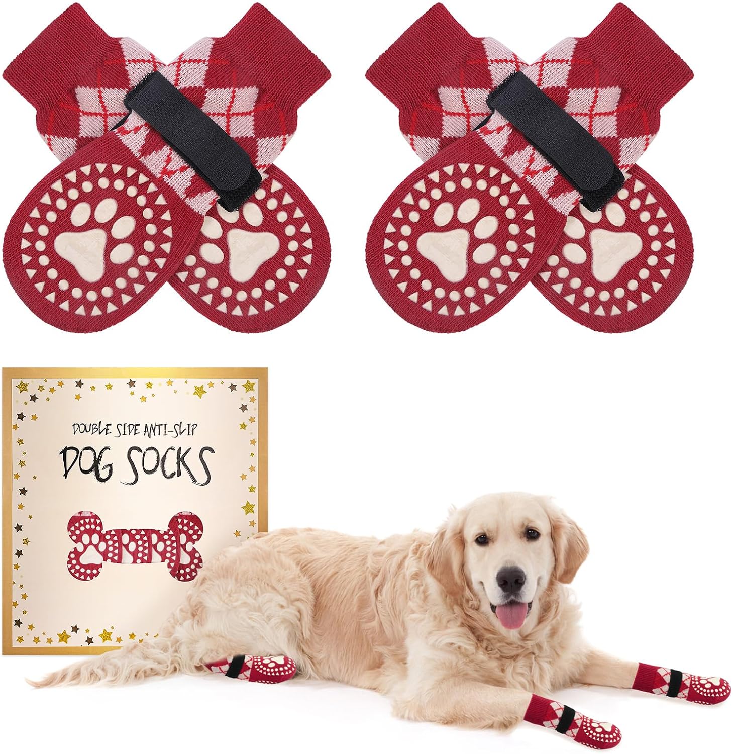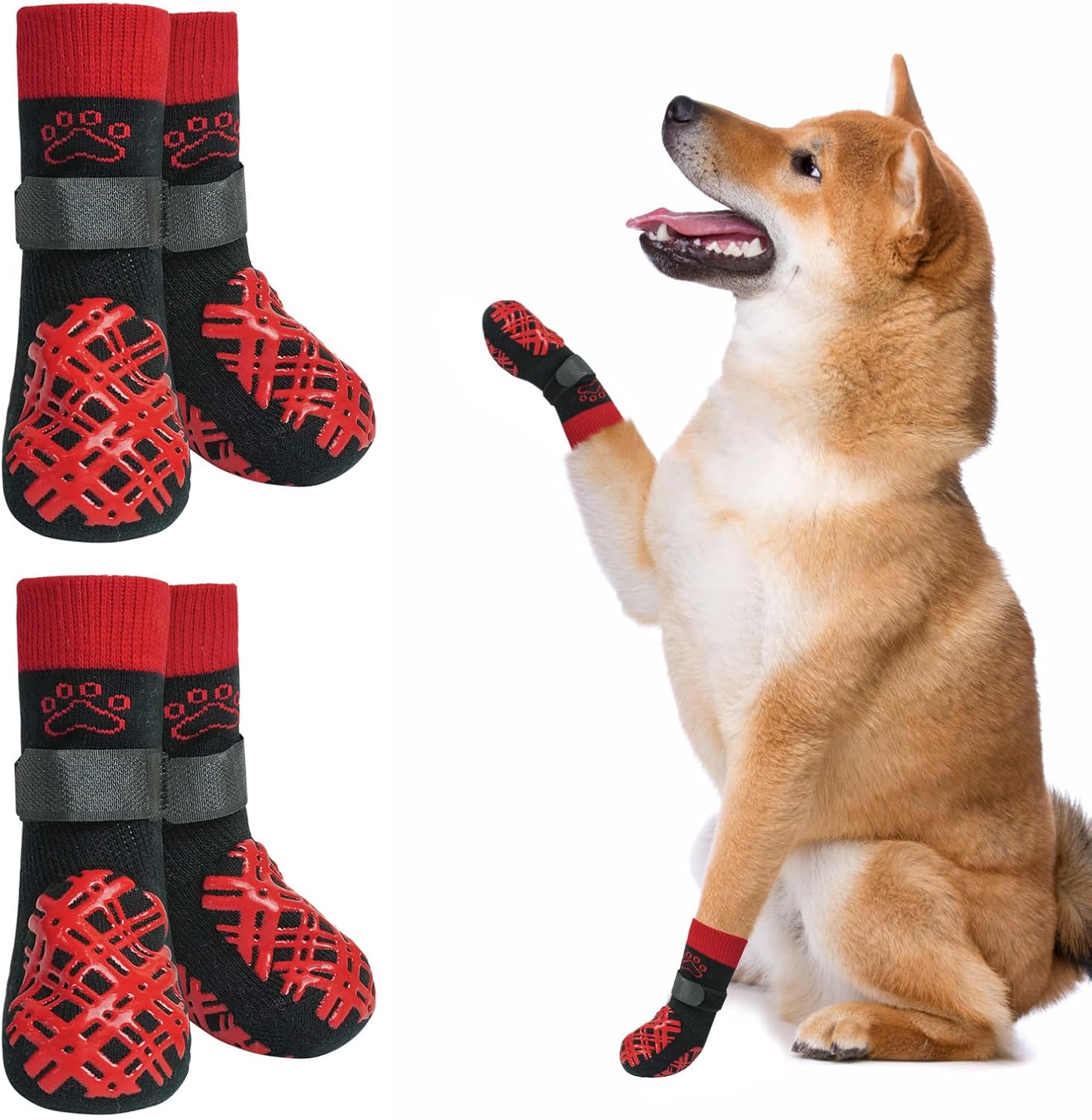 Practical & Stylish: In addition to their practical function, these socks are also a stylish accessory for your furry friend. Whether you have a small toy breed or a large working breed, these socks are a practical and comfortable solution for protecting your dog's paws. So why wait? Get a pair of socks for dogs for your furry friend today and give them the protection and comfort they deserve. Whether you're at home or on the go, these socks are a must-have for any dog owner.