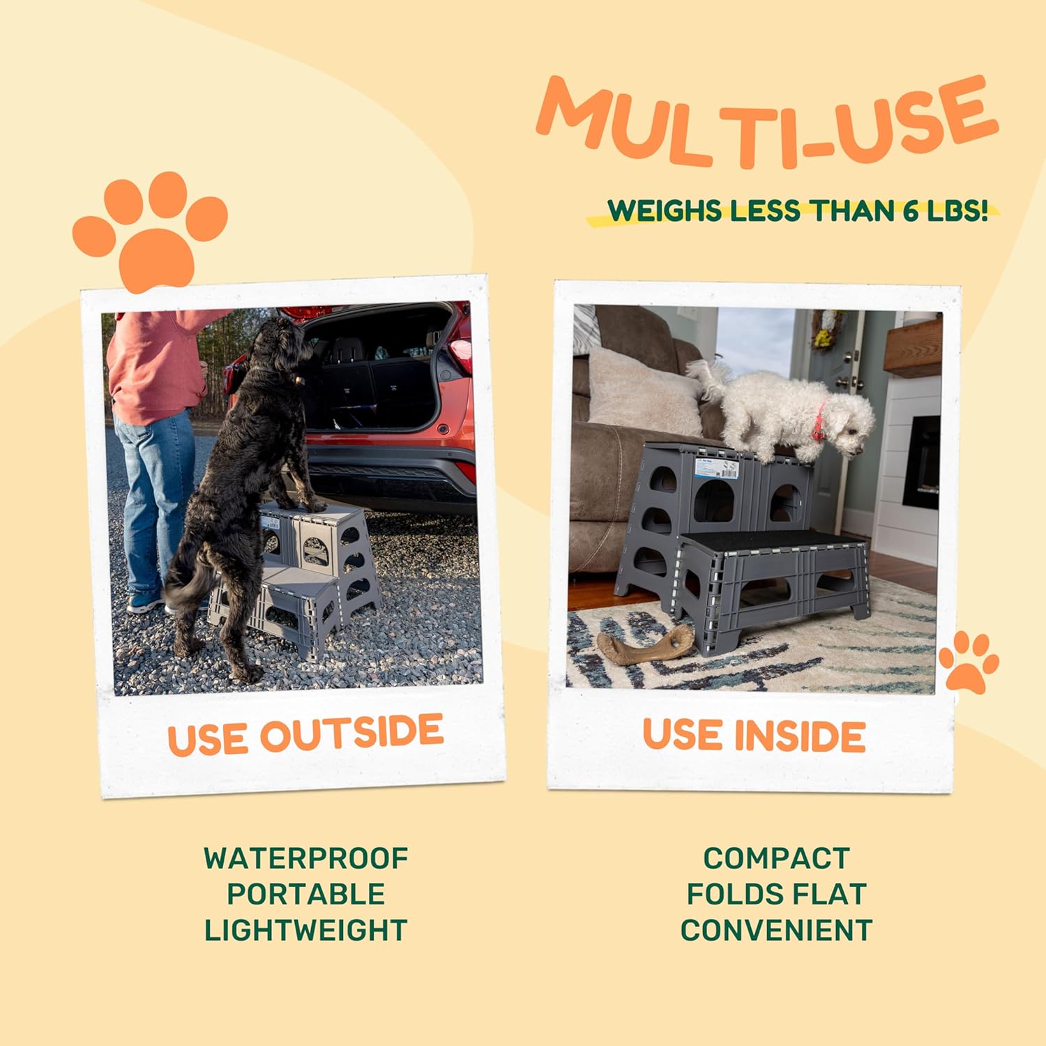 - Lightweight: Our dog step is designed to be convenient to carry and weighs just 5.75lbs. It is only 1.5 inches thick when folded!