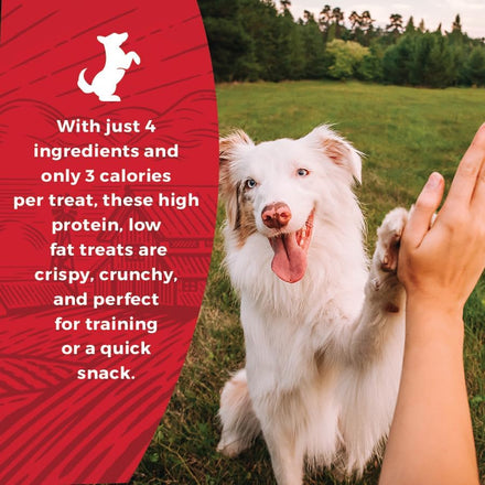 - LIMITED INGREDIENT - With just 4 ingredients, these high protein, low fat, crispy, crunchy treats are sure to be your dog's favorite treat.