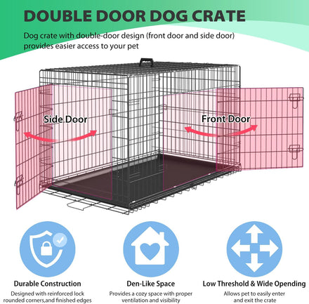 - Design for safety and comfort: The pet cage features two large doors with heavy-duty secure locking latches, providing a safe and secure environment for your pet. Suitable for large dog breeds