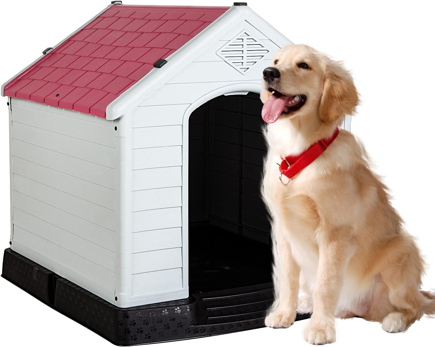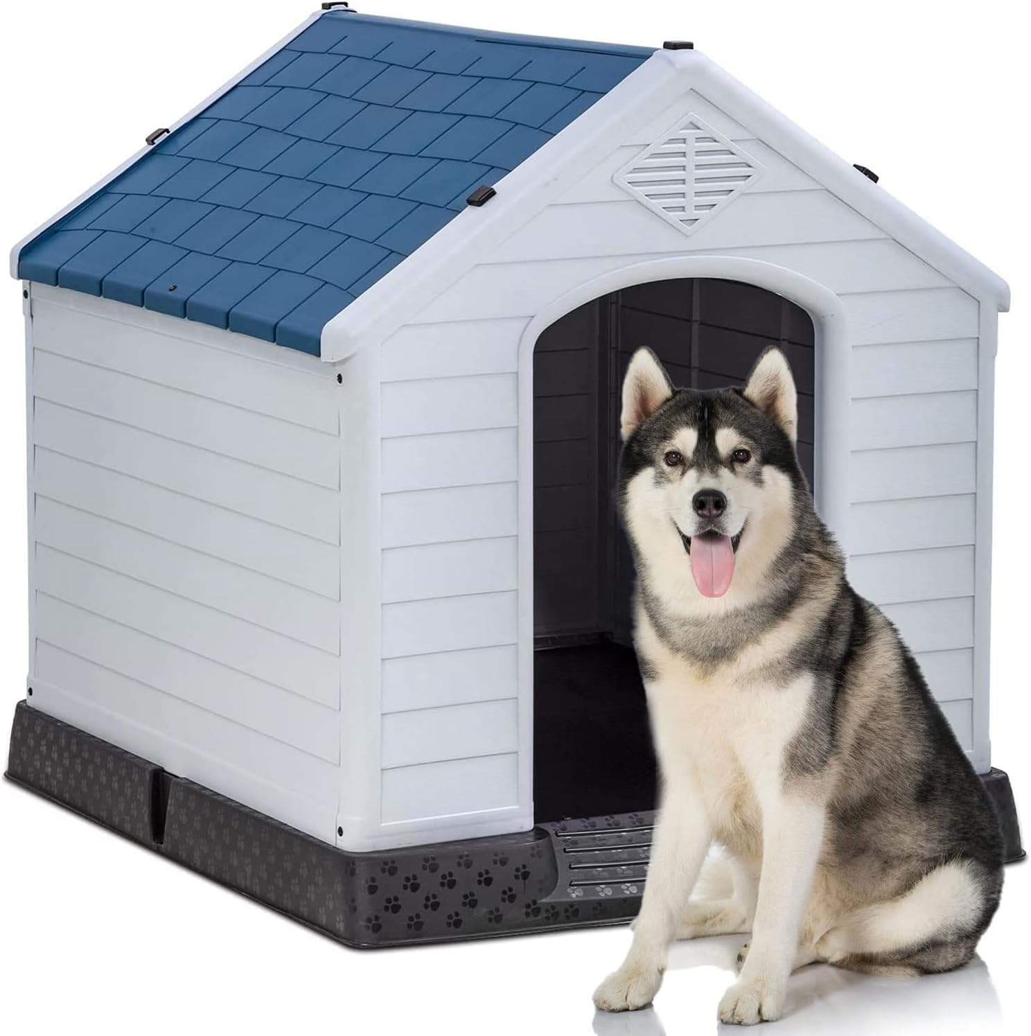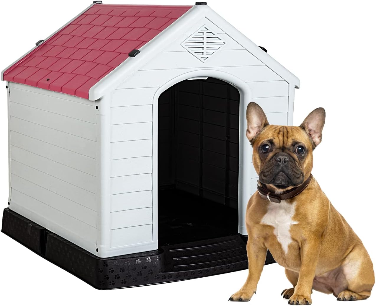 - 🏠【Outdoor Dog House】Our plastic dog house is ideal for use in backyard, patio, deck, etc. Double air vents ensures the circulation of fresh air, keeps your dog cool in summer. Besides, our dog house is made of heat-insulating materials; your pet will feel warmer if you put a blanket on the house in winter.Dog House Indoor Outdoor Plastic Dog House