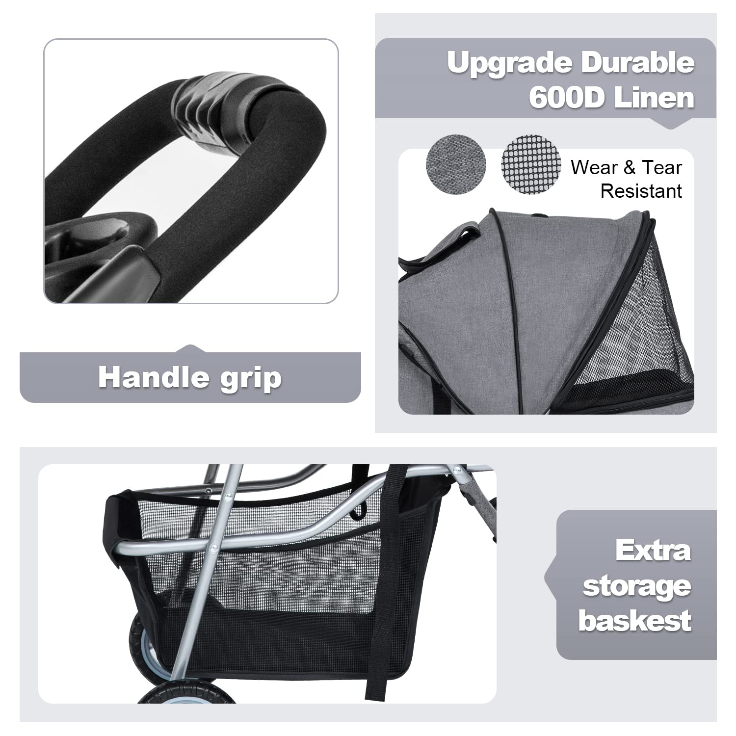 - 🐕【Upgraded Durable Materials】Durable mesh of our dog stroller provides airflow,visibility;Upgrade Linen which is skin-friendly, water-resistant and tough enough for you pets;Large 6in EVA wheels of our cat stroller glide easily over smooth or rough terrain. The front wheels can be rotated 360° without dead ends, and you can turn on the straight walk to achieve a full-featured mobile lifestyle.