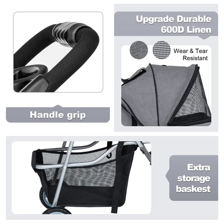 Small Dogs Cats Folding Lightweight Travel Stroller with Cup Holder ,Grey |