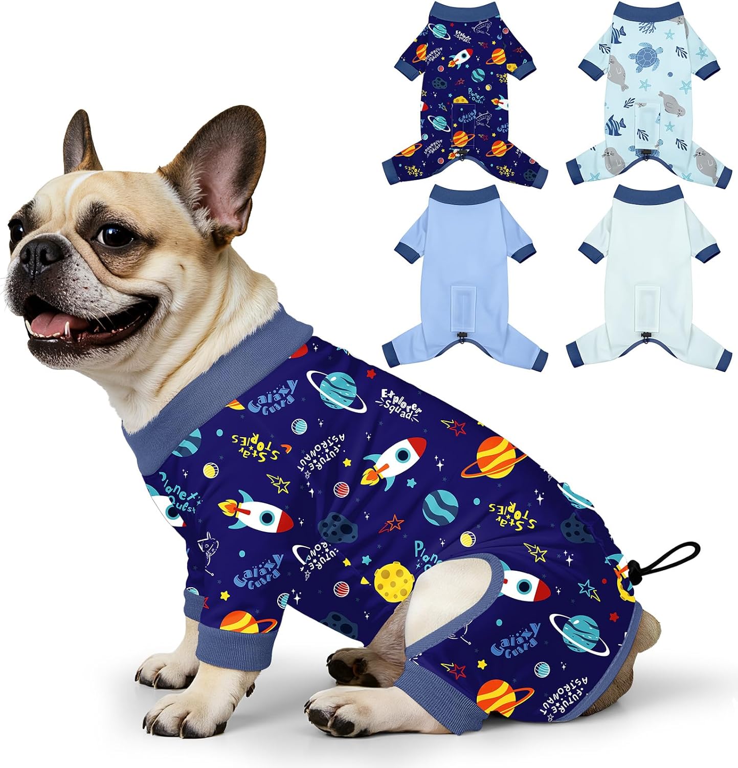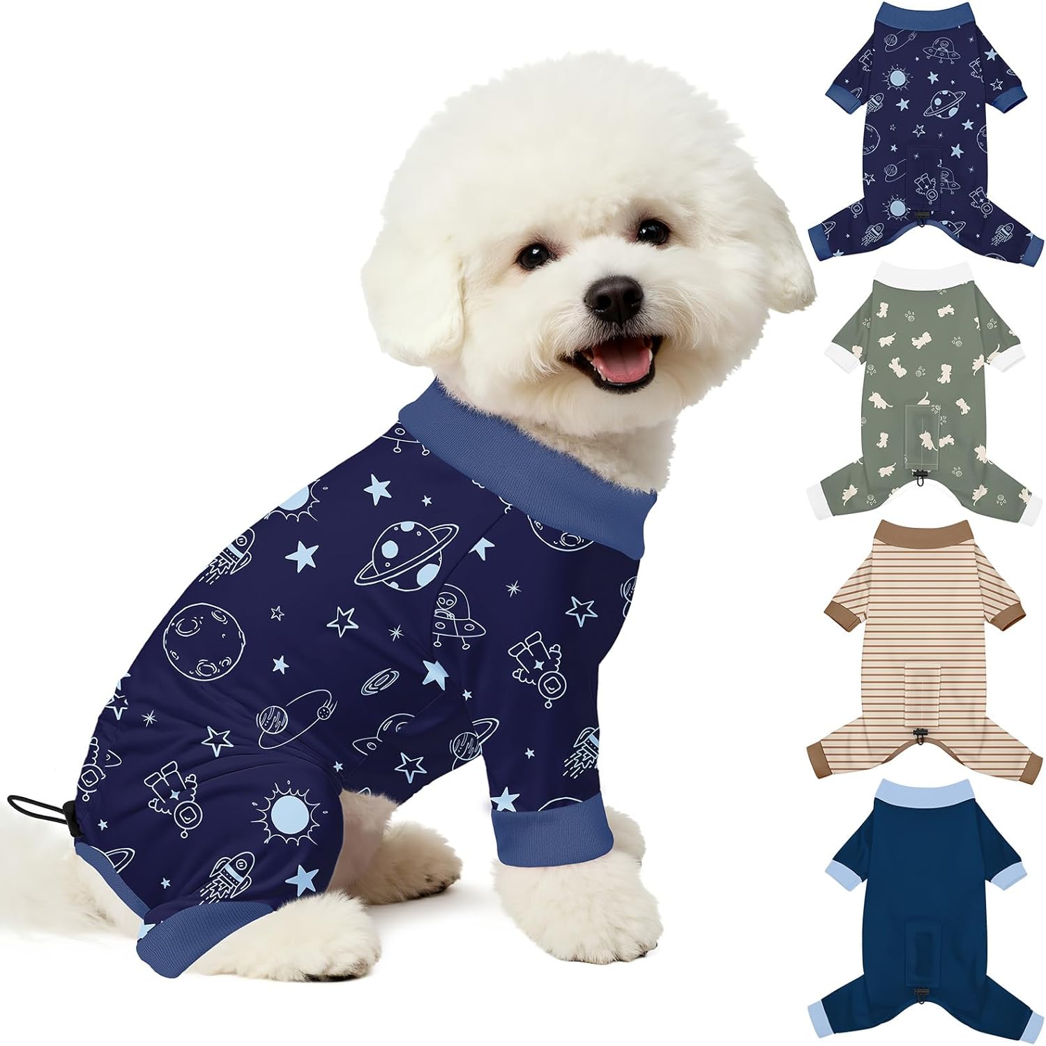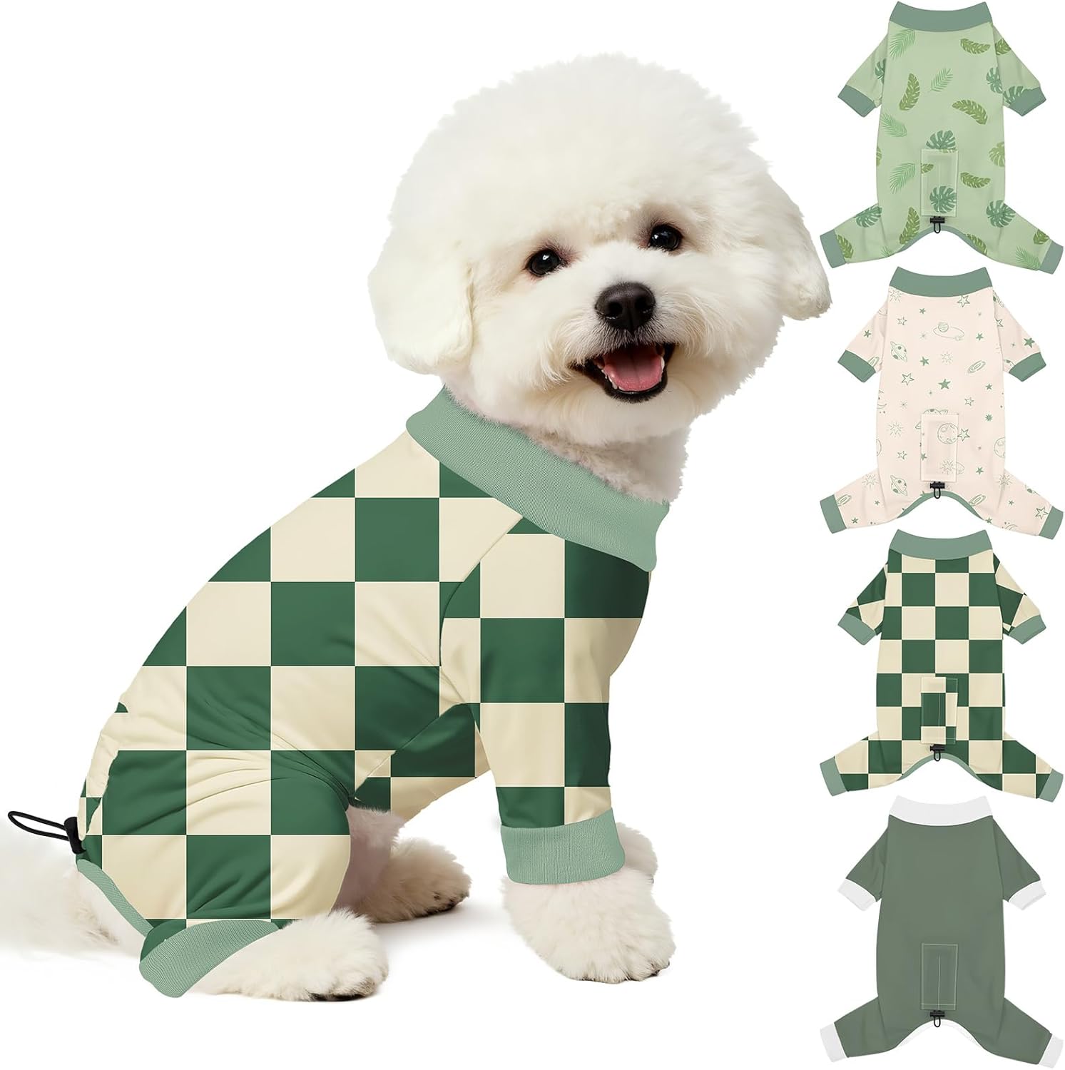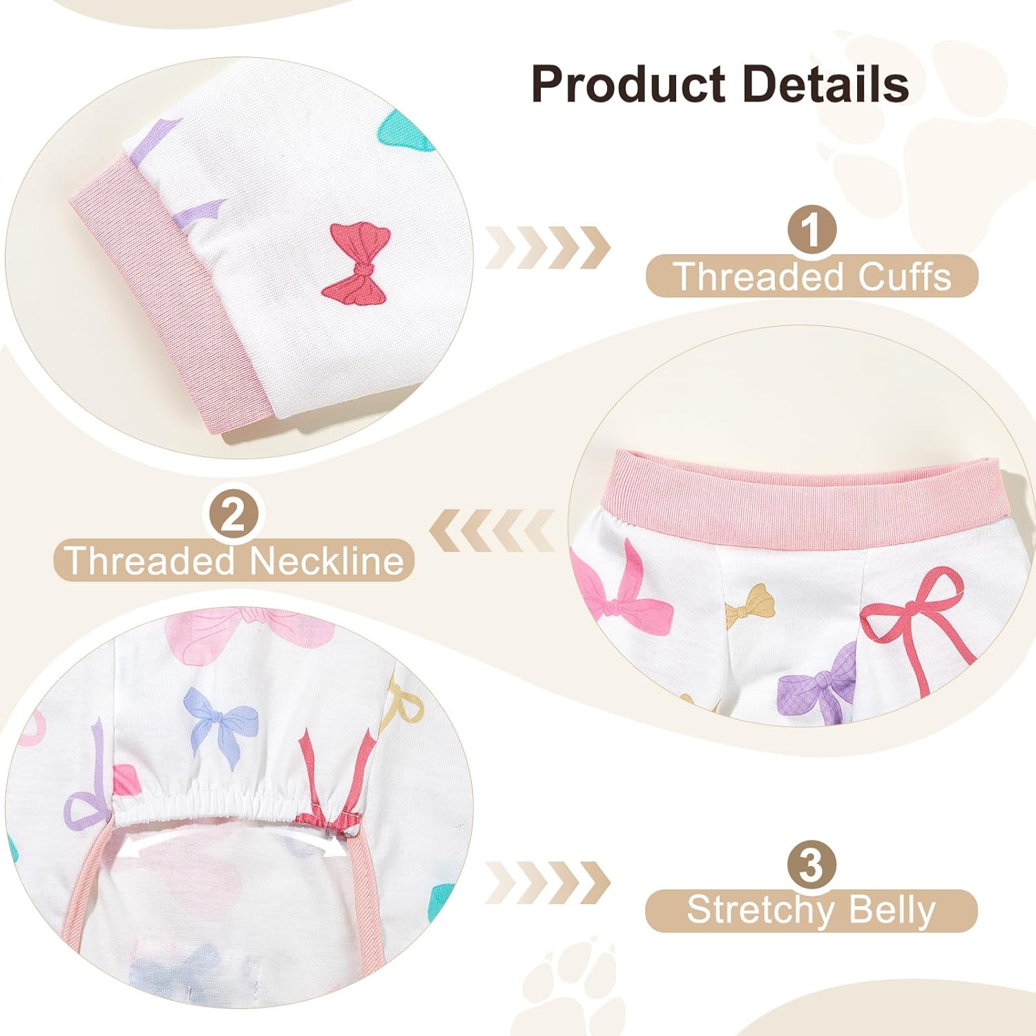 Soft & Stretchy Fabric: Made from soft, breathable polycotton, these dog jammies offer excellent stretchability without restricting your dog's movements;The pullover design with stitching and stretchy closure makes them easy to put on and take off, preventing them from shifting, and ensuring comfort in all seasons