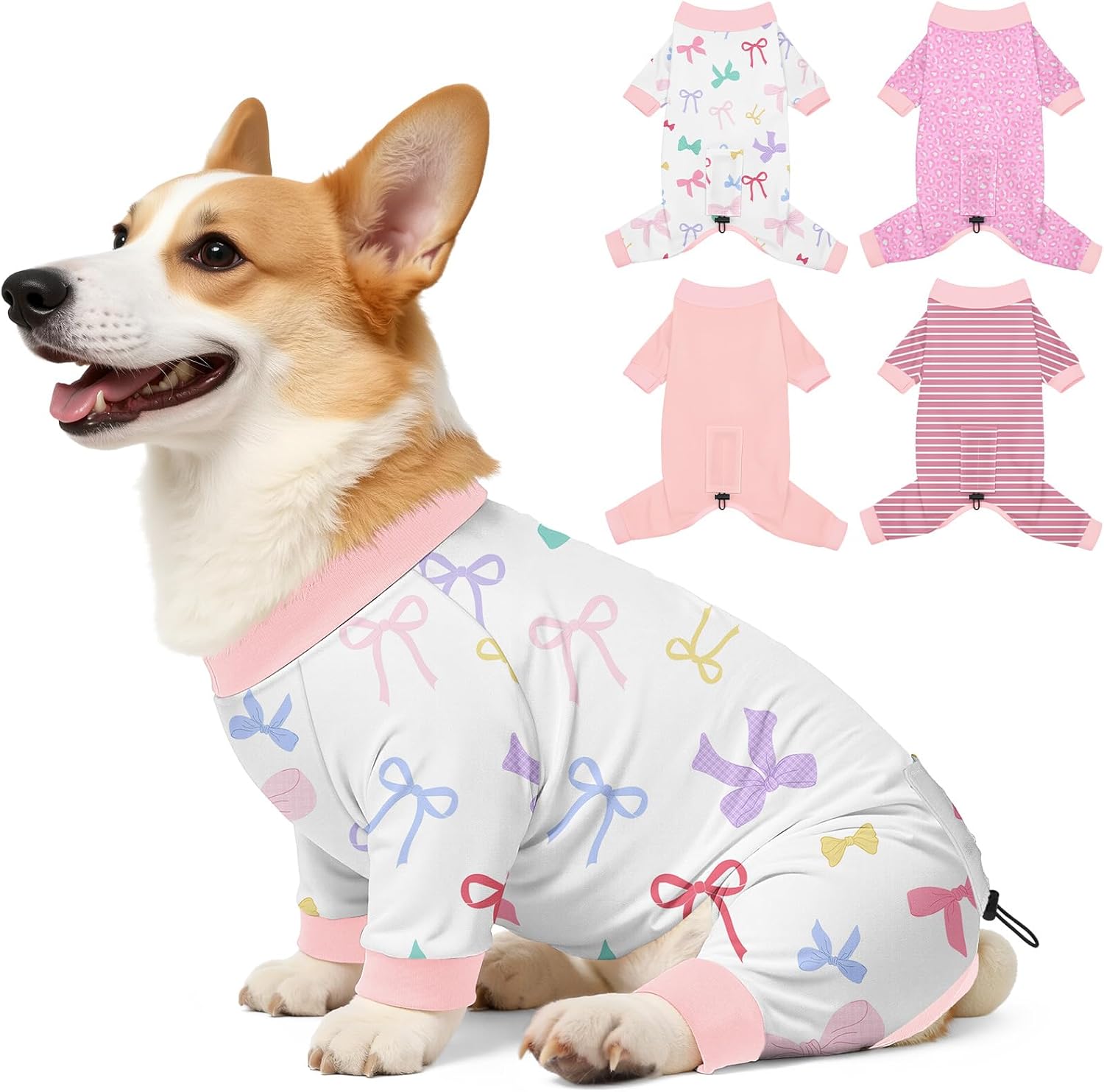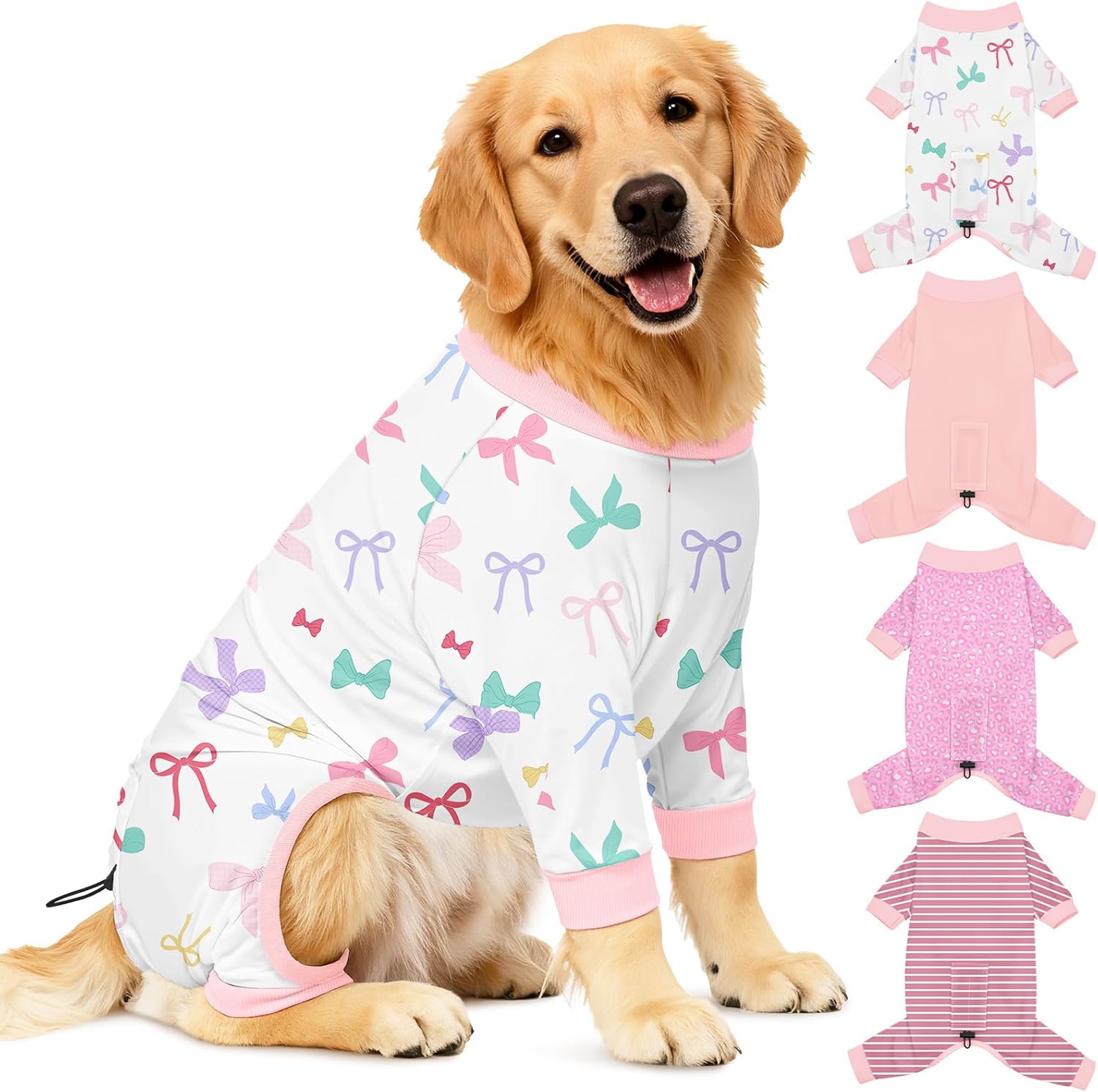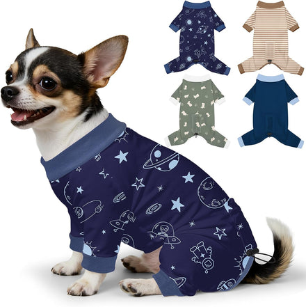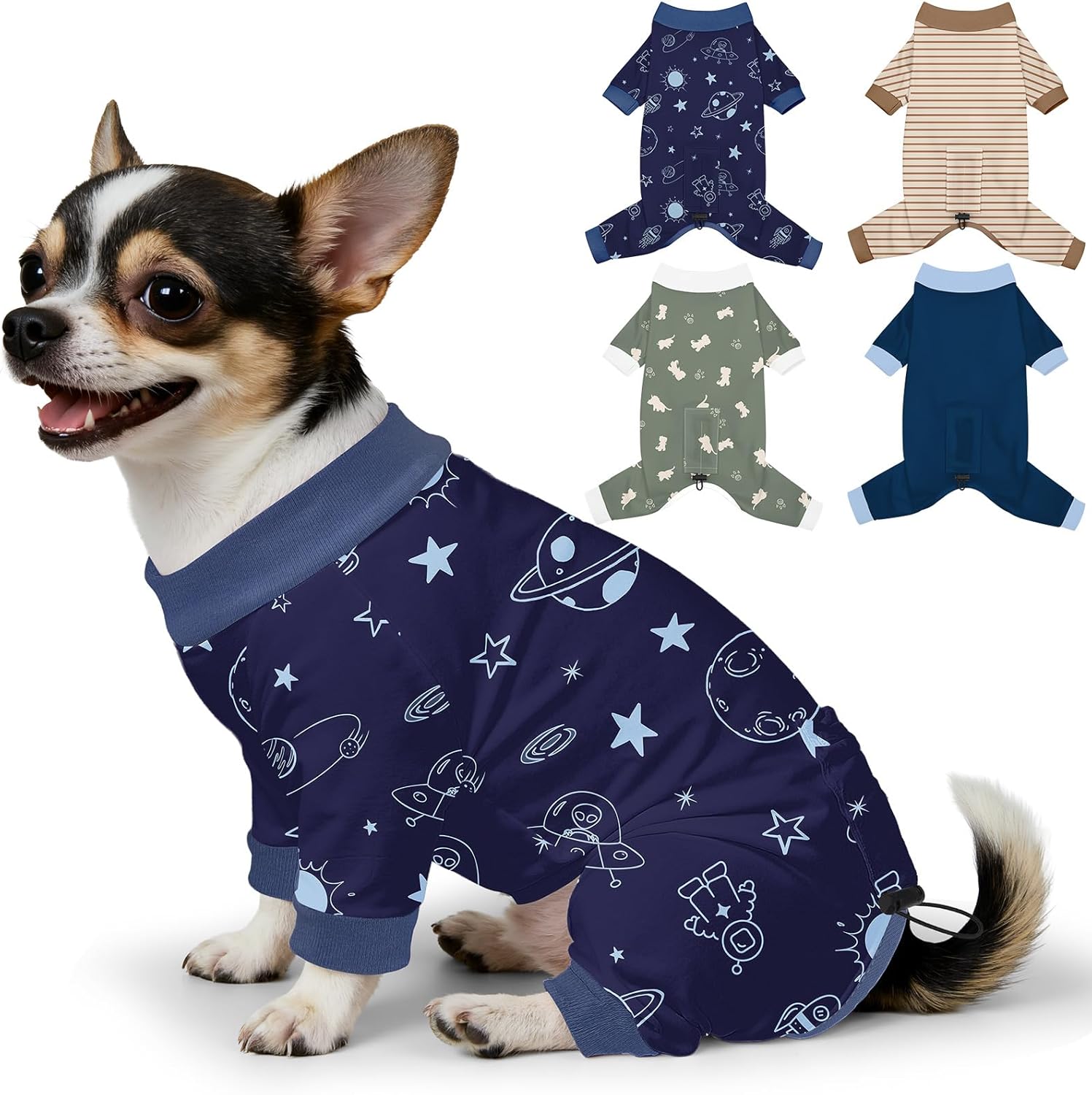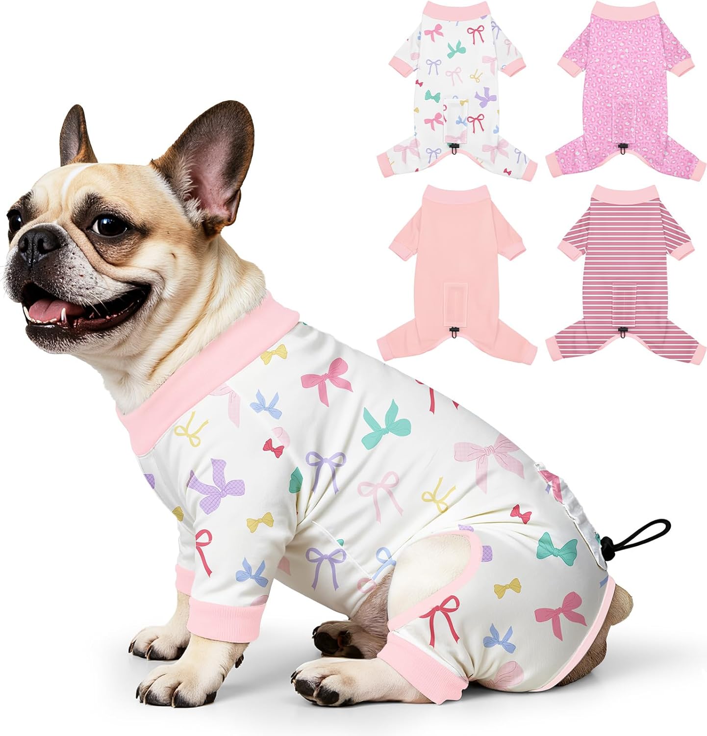 Soft & Stretchy Fabric: Made from soft, breathable polycotton, these dog jammies offer excellent stretchability without restricting your dog's movements;The pullover design with stitching and stretchy closure makes them easy to put on and take off, preventing them from shifting, and ensuring comfort in all seasons