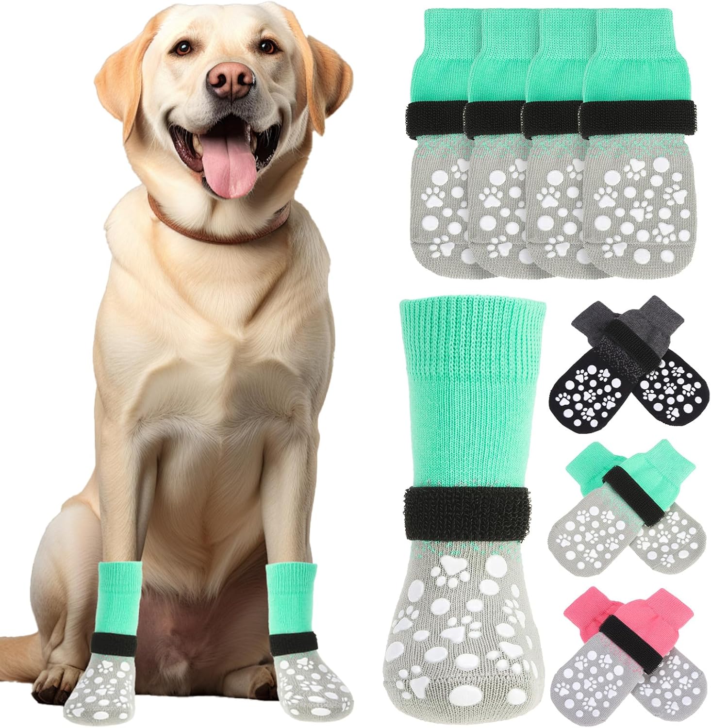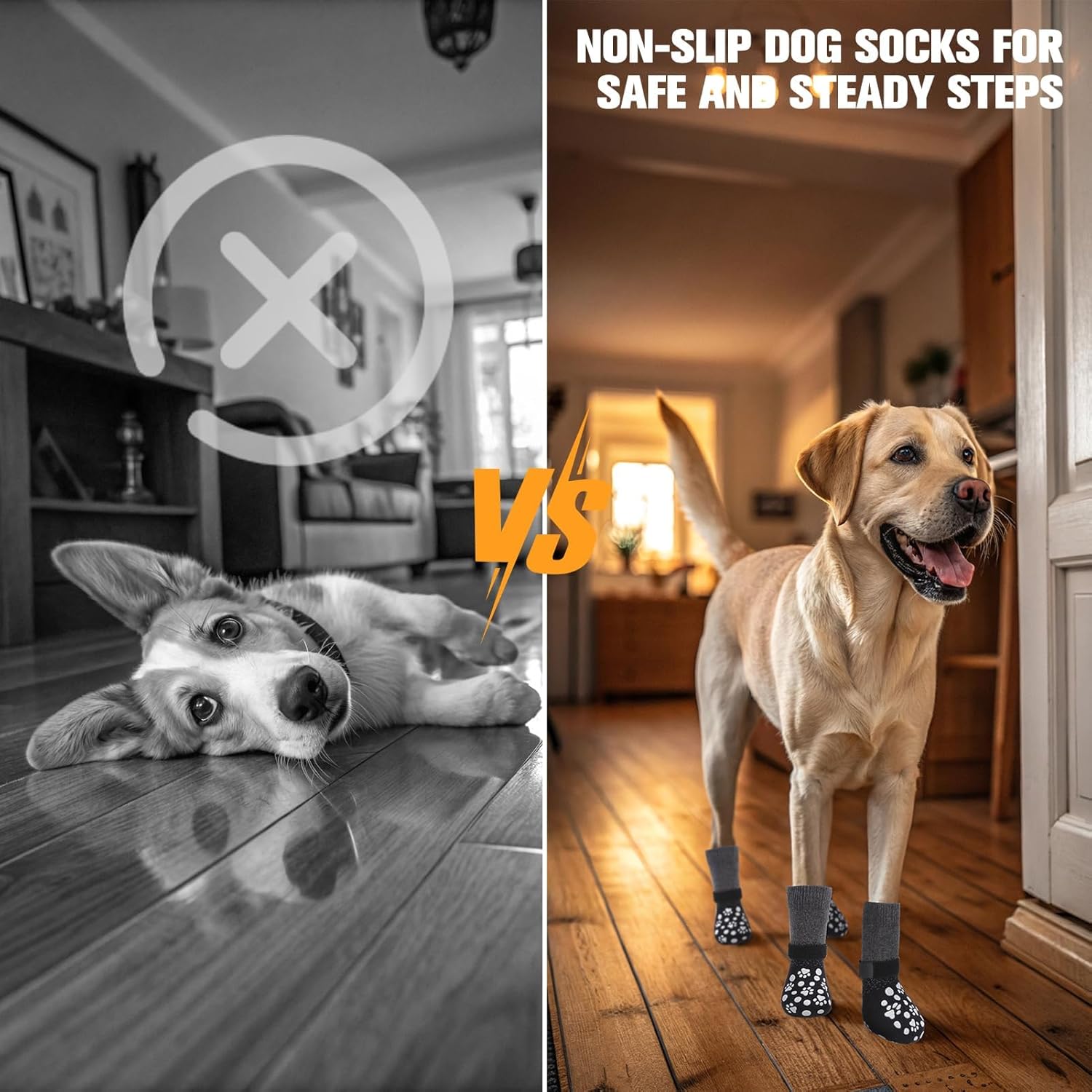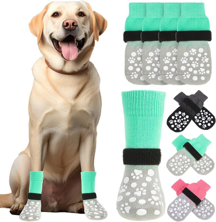 - DUAL-SIDED ANTI-SLIP GRIP: Features non-slip paw print grips on both sides of the socks, ensuring extra traction on smooth surfaces like hardwood or tile—even if the socks twist. Especially helpful for senior dogs or those with mobility issues to prevent slipping and sliding