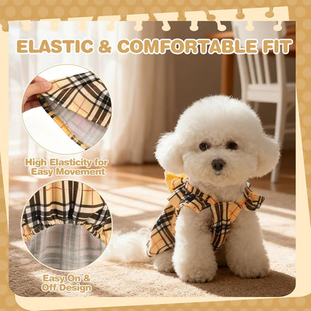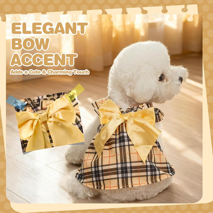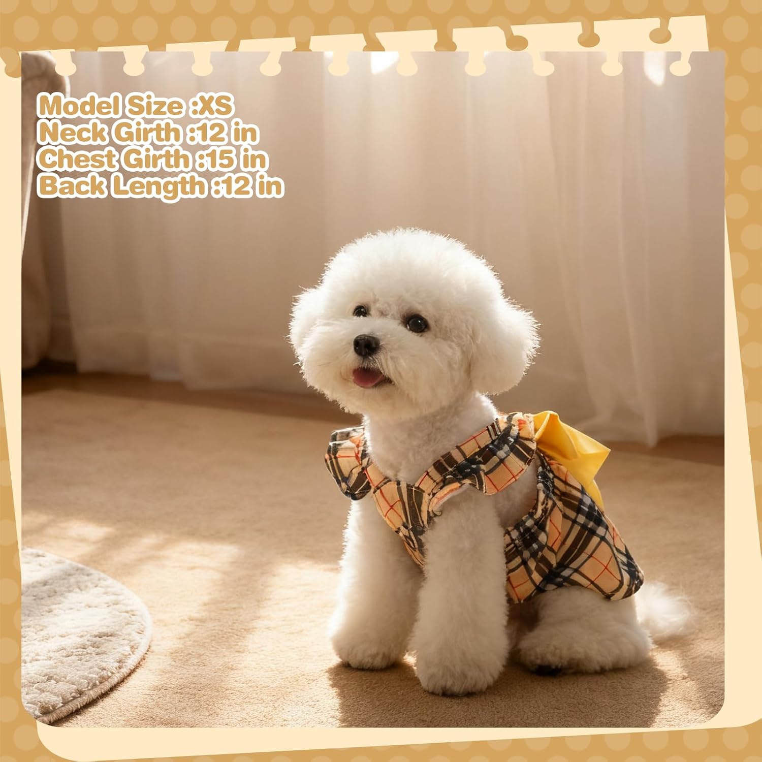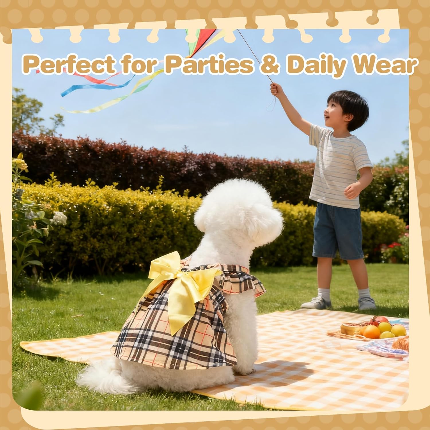 - CUTE & STYLISH DETAILS: Classic plaid print paired with a sweet bowknot on the back and delicate ruffle sleeves—making this puppy dress extra charming and picture-ready