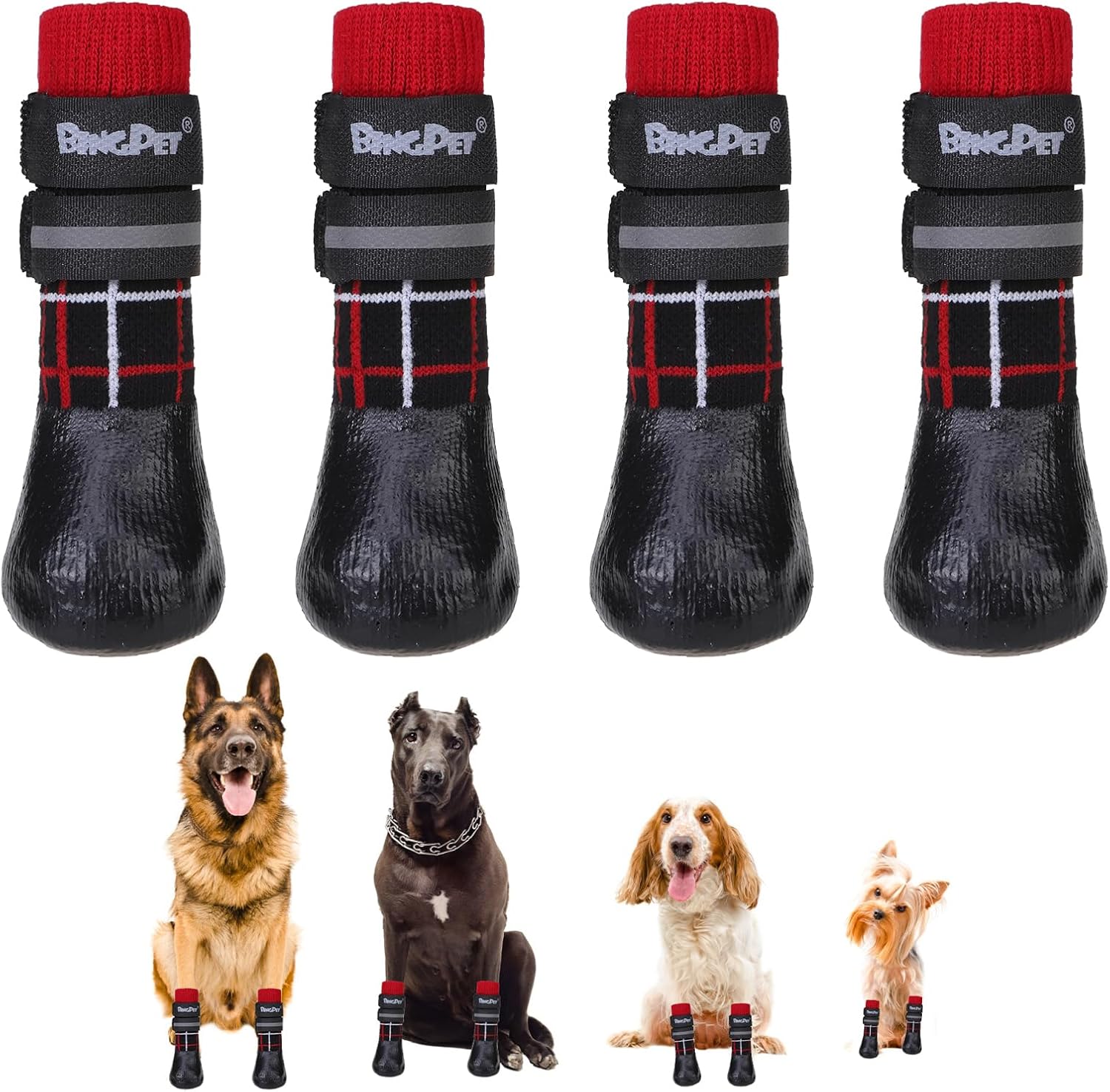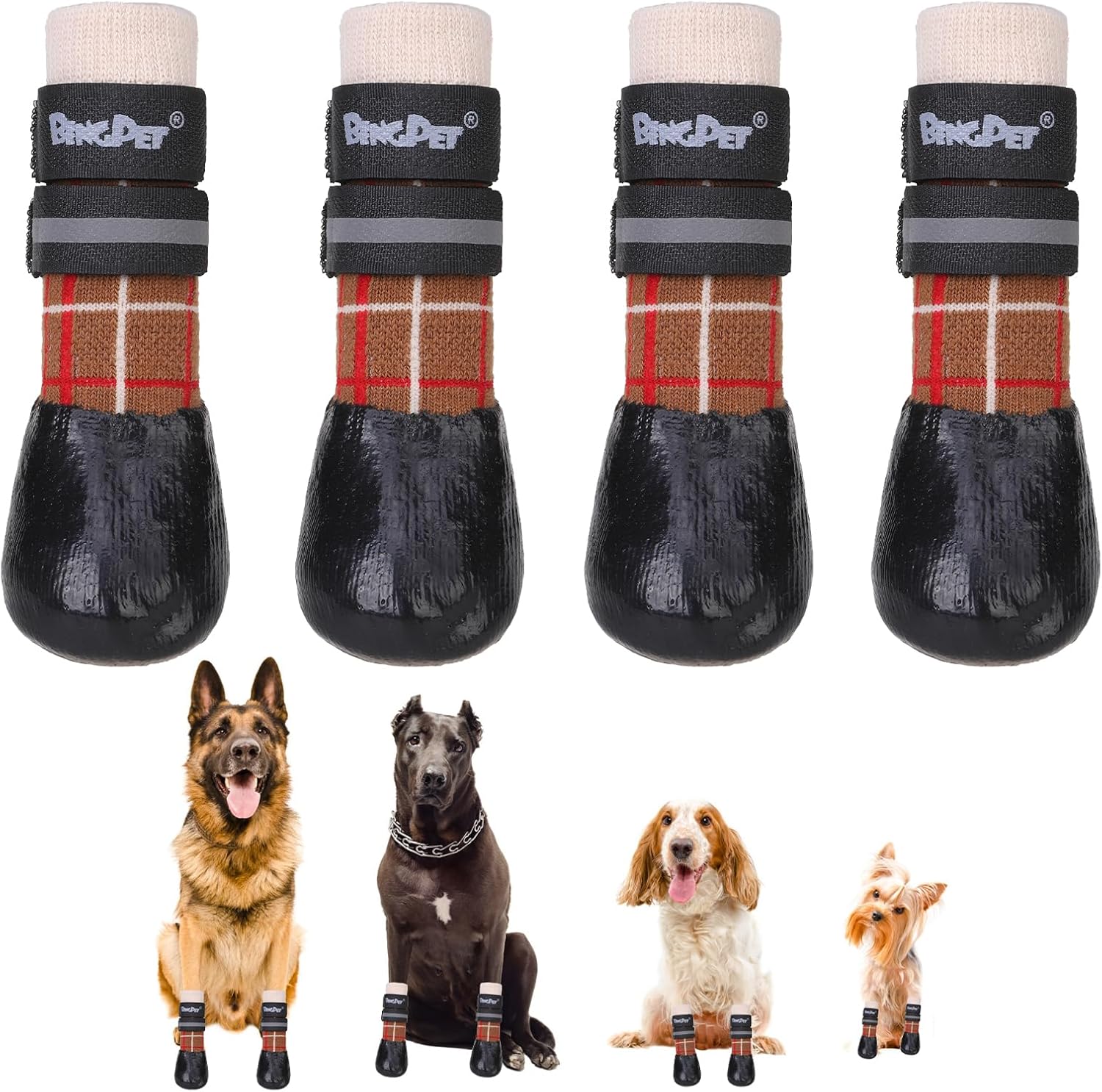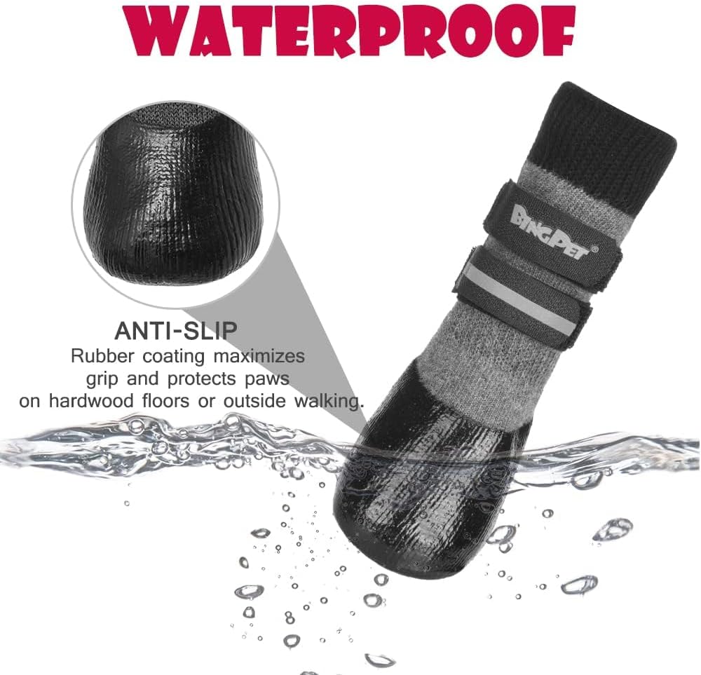 BINGPET Dog Socks for Hardwood Floors,Outdoor Anti Slip Waterproof Paw Protector,Dog Boots for Hot Pavement for All Season Grip Socks Prevent Licking for Small Medium Large Old Dogs